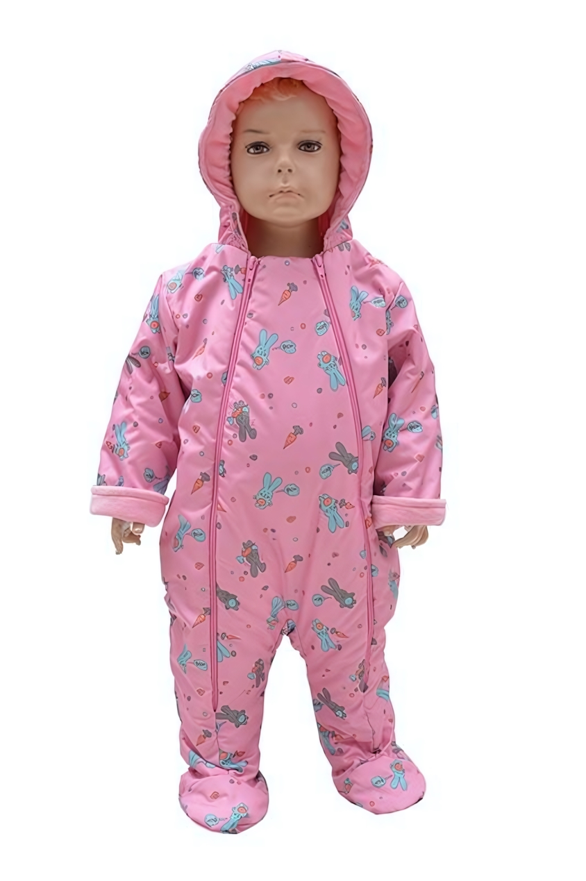 Этот комбинезон разработан для комфортных прогулок в прохладную погоду и отлично подойдёт для малышей, которым важно тепло и уют. Мягкая подкладка из велюра согревает ребёнка, а плотная ткань верха защищает от ветра и небольшого дождя. Яркий принт с забавными зайцами привлекает внимание и поднимает настроение.