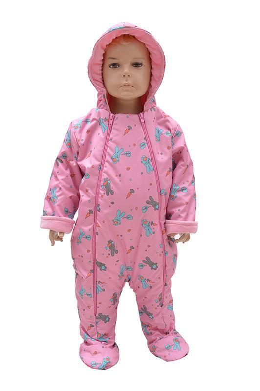 Детский комбинезон "Rusland" с утеплителем Теплофил 60 гр/м, размер 80, розовый, принт зайцы и сердечки
