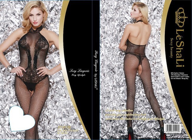 Комбинезон-сетка 'JT1417B' с открытой спиной и кружевом, черный, размер SL (42-46), нейлон/спандекс