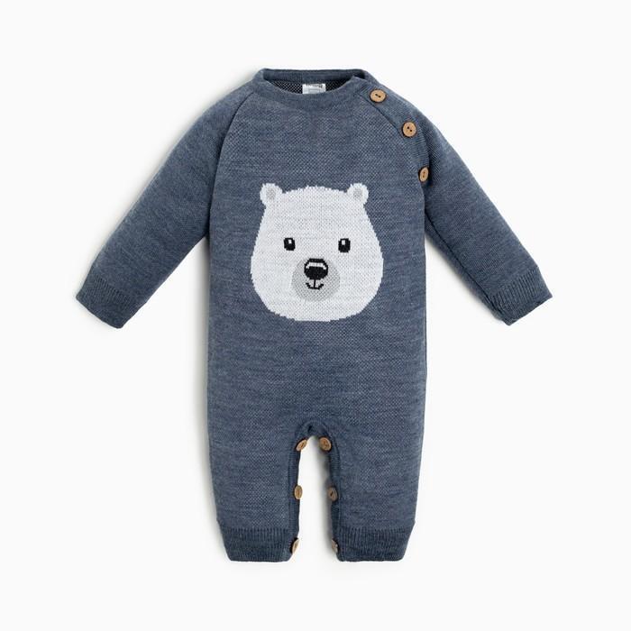 Комбинезон вязаный "Мишка", рост 68-74 см, шерсть/ПАН, серо-синий