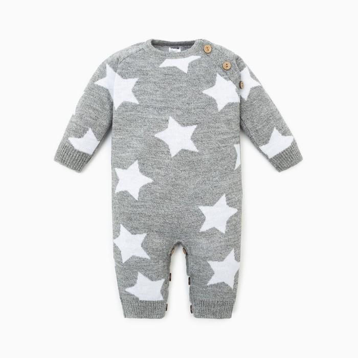 Комбинезон детский вязаный «Звезды», серый с белыми узорами, размер 86-92 см, ПАН 80%/шерсть 20%, кнопки на плече