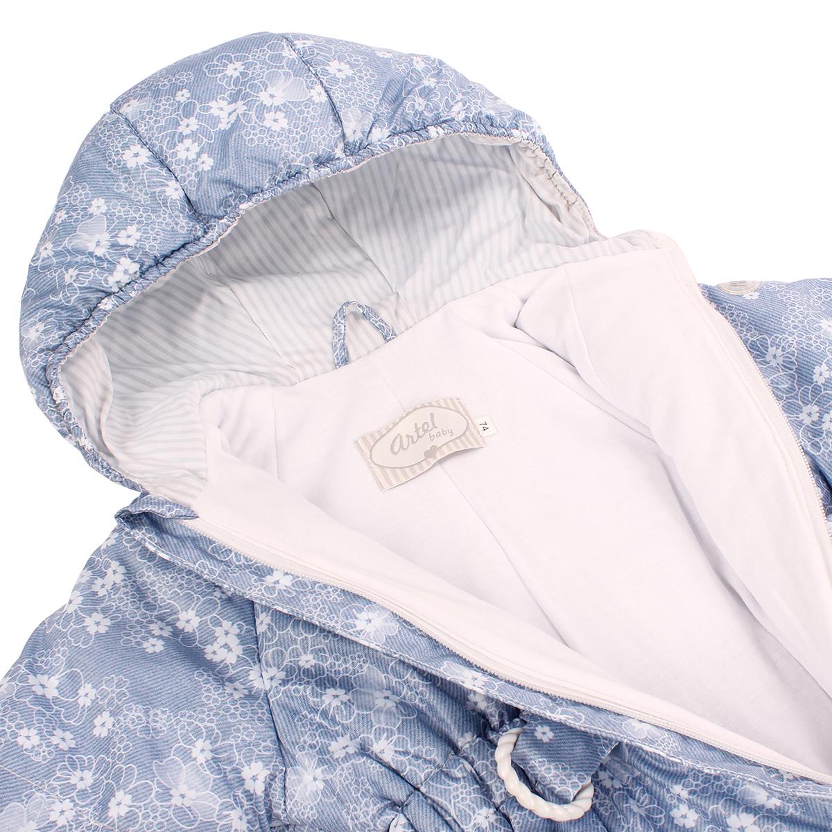 Подходит для малышей размера 74 в возрасте от 3 до 9 месяцев. Легко надевается и снимается благодаря удобной молнии спереди и регулируемому поясу на талии. Закрытые ножки-носочки предотвращают намокание ножек от снега или влаги, а длинные рукава с эластичными манжетами сохраняют тепло и предотвращают сквозняки.