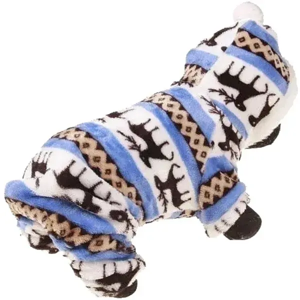 Комбинезон легко надевается и снимается благодаря удобному крою и наличию манжетов на рукавах и штанинах. Он подходит для повседневных прогулок, а также для активного отдыха на свежем воздухе. Благодаря капюшону с помпоном, ваш питомец будет выглядеть стильно и модно, а также защищен от непогоды.