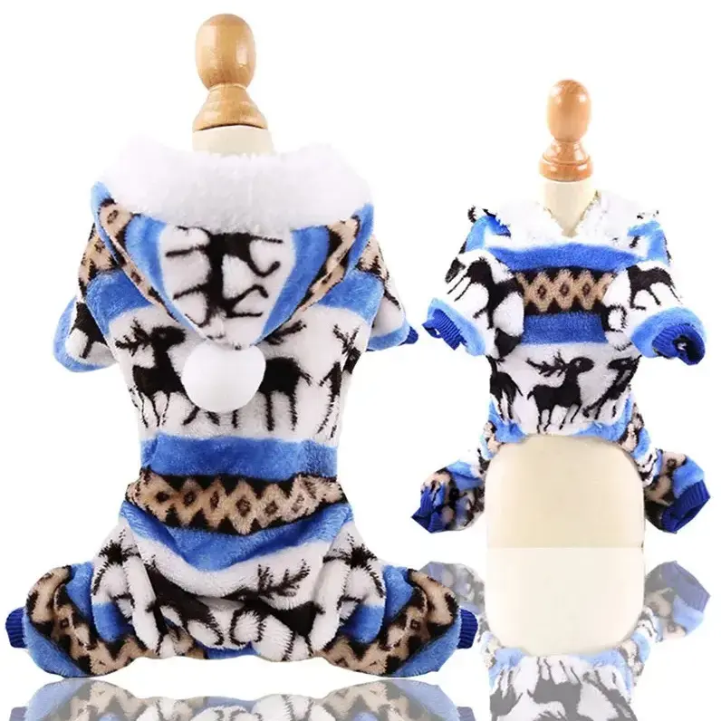 Комбинезон предназначен для мелких и средних пород собак, что делает его идеальным выбором для вашего четвероногого друга. Он легко надевается и снимается, что позволяет быстро подготовить питомца к прогулке. Капюшон с белым помпоном добавляет дополнительный стиль и защищает уши собаки от холода.
