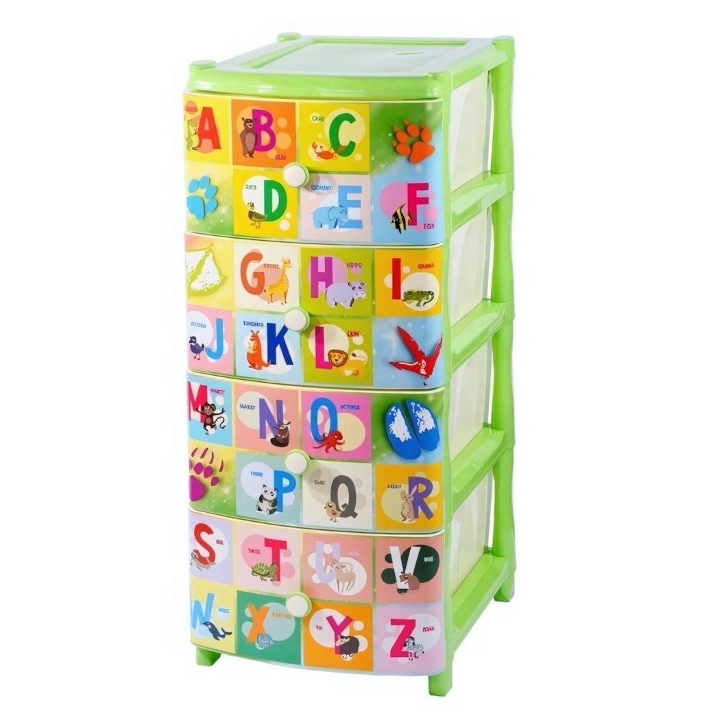 Пластиковый комод с английским алфавитом и забавными животными превратит хранение игрушек в увлекательную игру. Прочные ящики с удобными ручками помогут привить ребёнку любовь к порядку, а красочные иллюстрации — начать изучение иностранного языка.