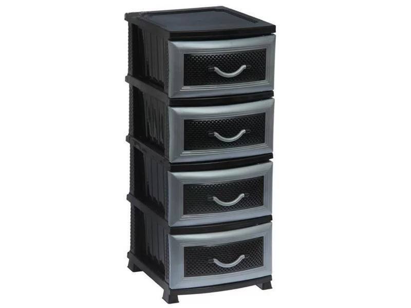Обеспечьте порядок в спальне или рабочем пространстве с помощью пластикового комода «Дельфин» объемом 4 ящика. Его современный дизайн, выполненный в черном цвете с серой окантовкой, идеально впишется в любой интерьер