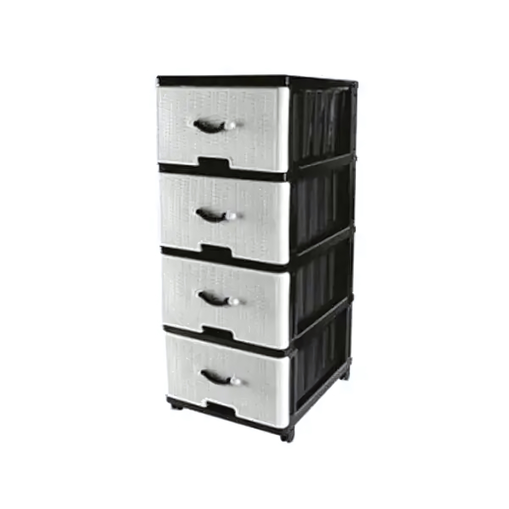 Комод DDSTYLE "Панельный" 4-секционный, пластик, черно-белый, для экономии пространства