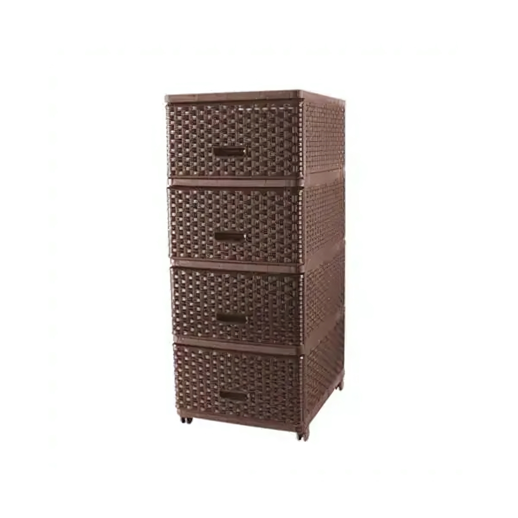 Комод плетеный 4-секционный, коричневый, стильный дизайн для хранения