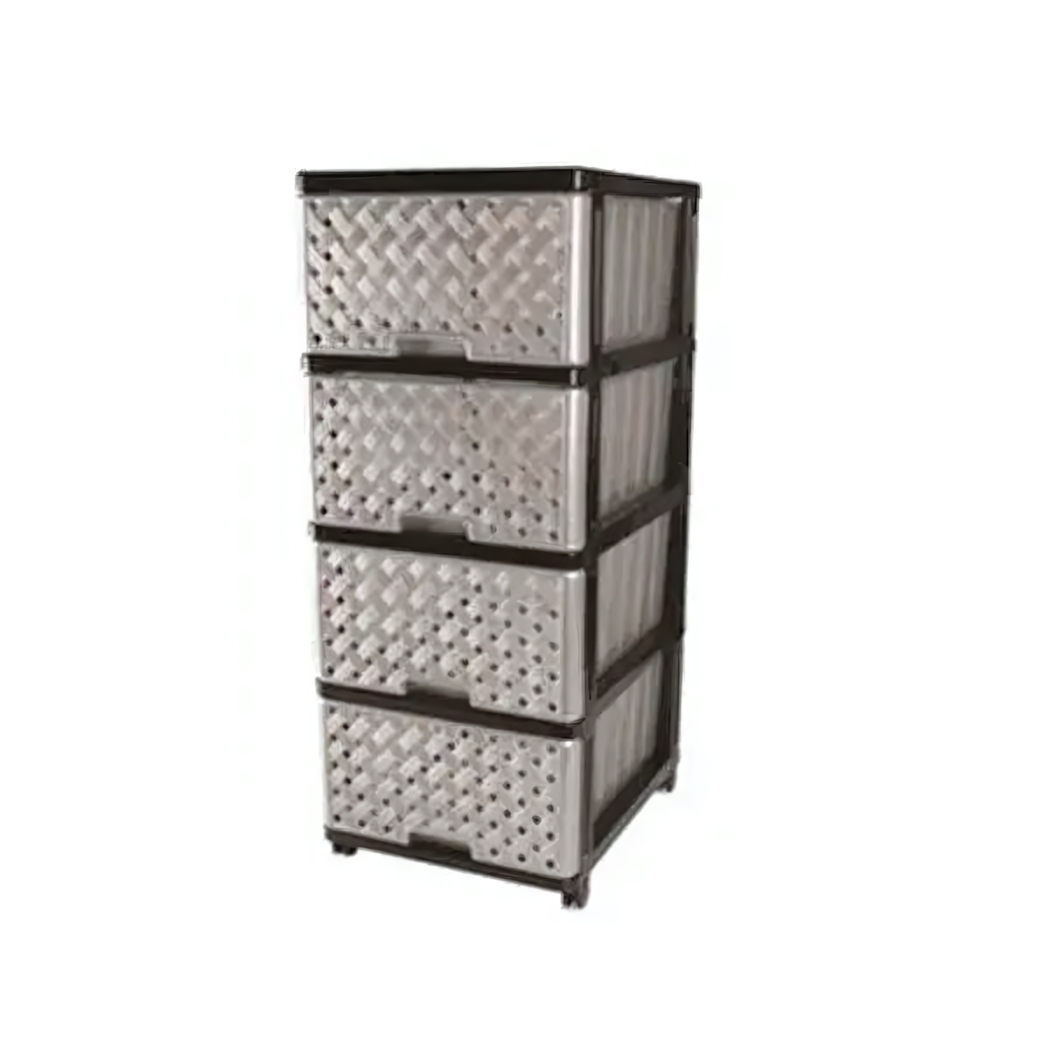 Четыре вместительных ящика, стильная текстура плетения и лаконичный дизайн — идеальное решение для систематизации вещей в любой комнате. Устойчивая конструкция на ножках обеспечивает надежность даже при активной эксплуатации.