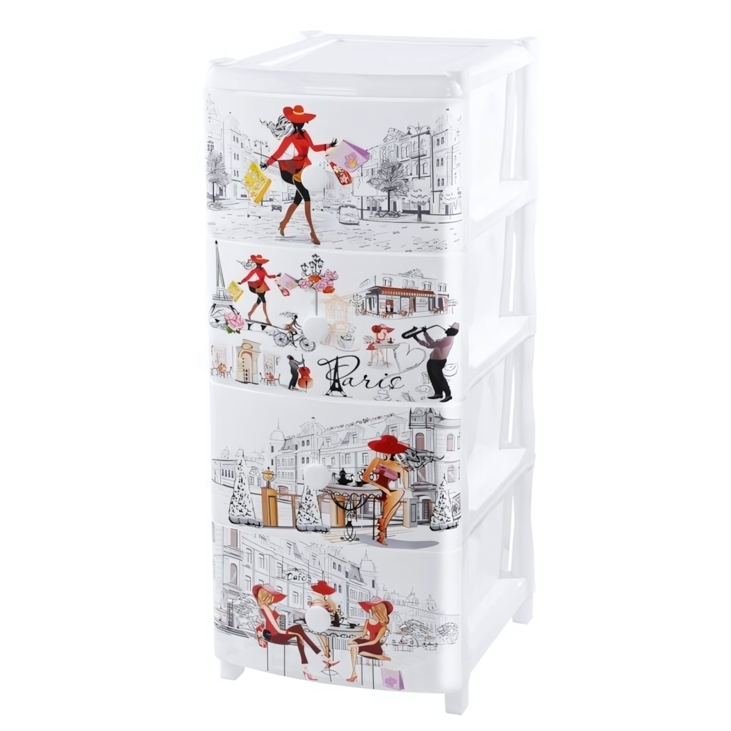 Сочетание функциональности и декора: графичные чёрно-белые иллюстрации с красными акцентами создают атмосферу французского квартала. Контрастная надпись «Paris» добавляет интерьеру индивидуальности. Универсальный белый цвет гармонирует с любой цветовой палитрой помещения.