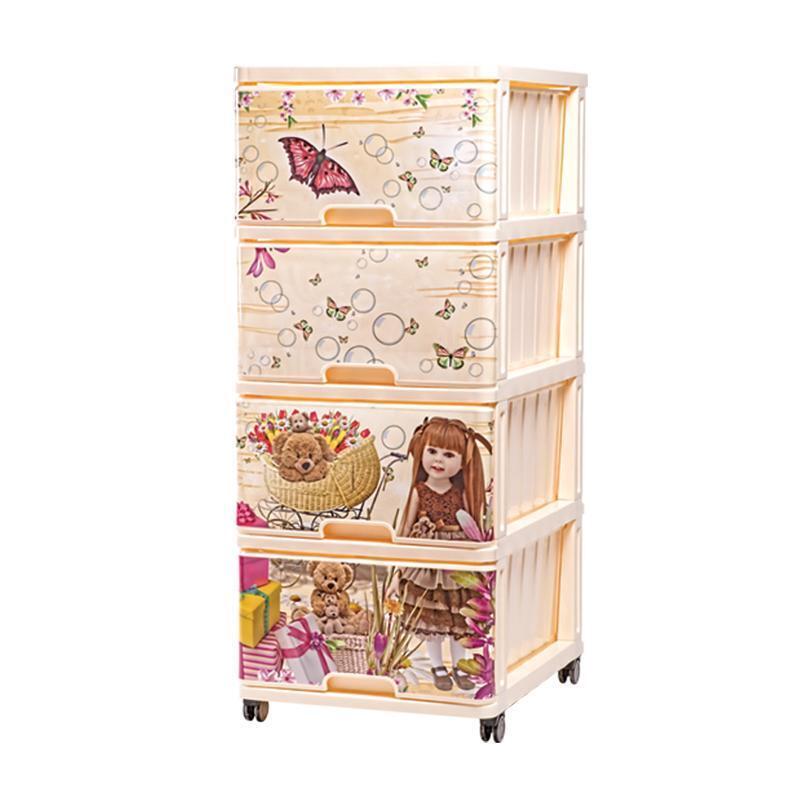 Практичный пластиковый комод с 4 секциями для хранения игрушек