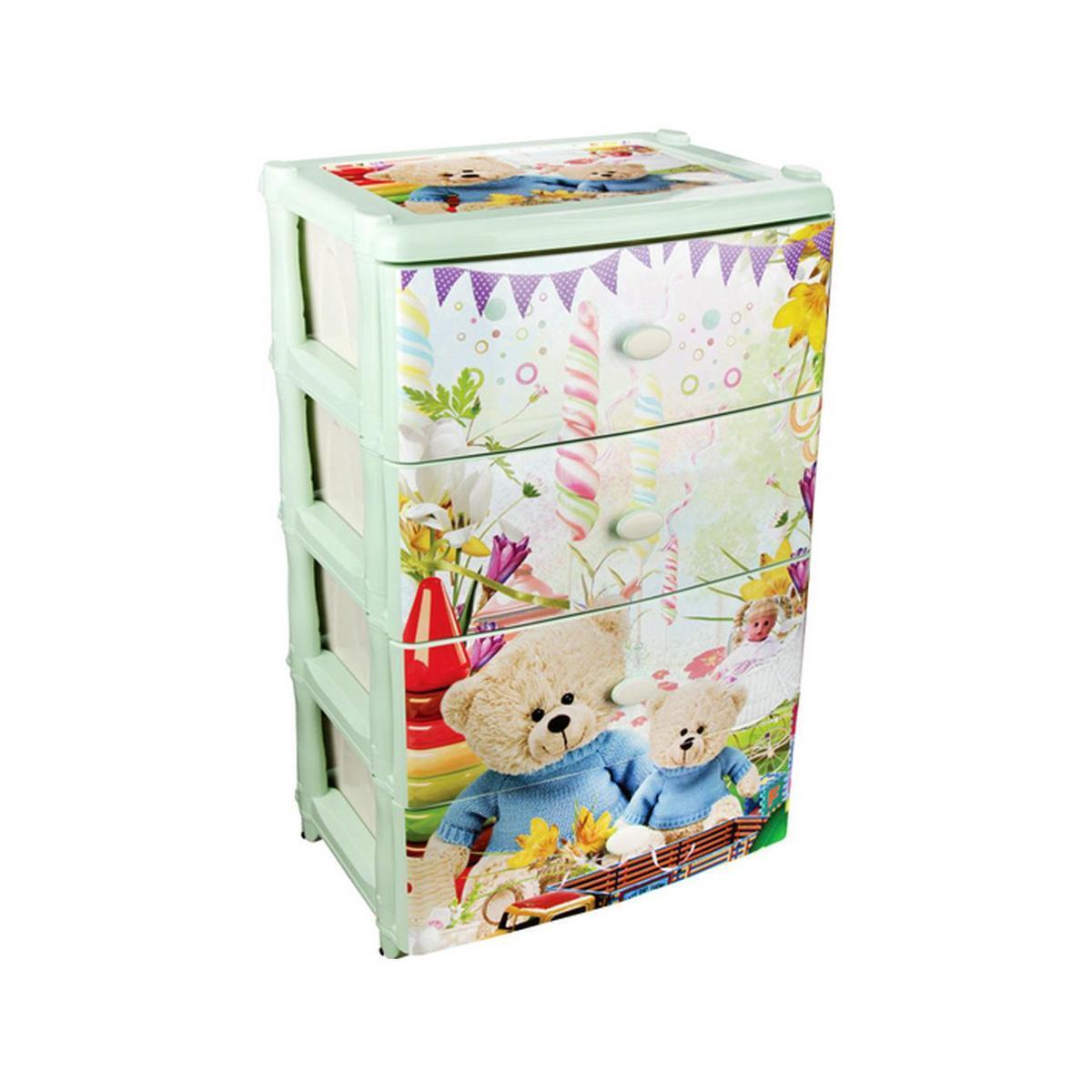 Комод детский «Мульти-Пульти», 4 выдвижных ящика, пластик, декор мишек, цвет светло-зеленый