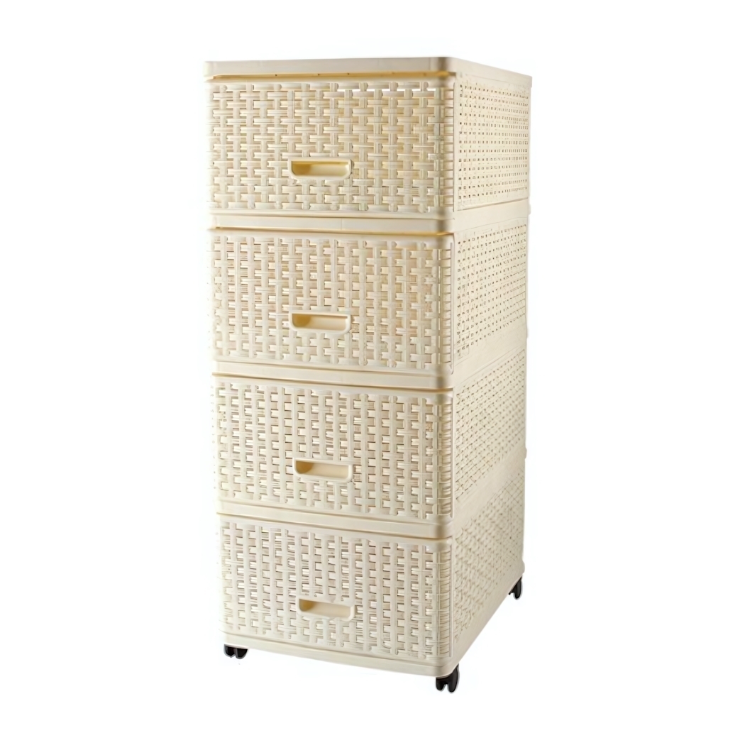 Комод пластиковый 'Плетеный' 4 ящика, кремовый, на колесиках, 400*500*985 мм