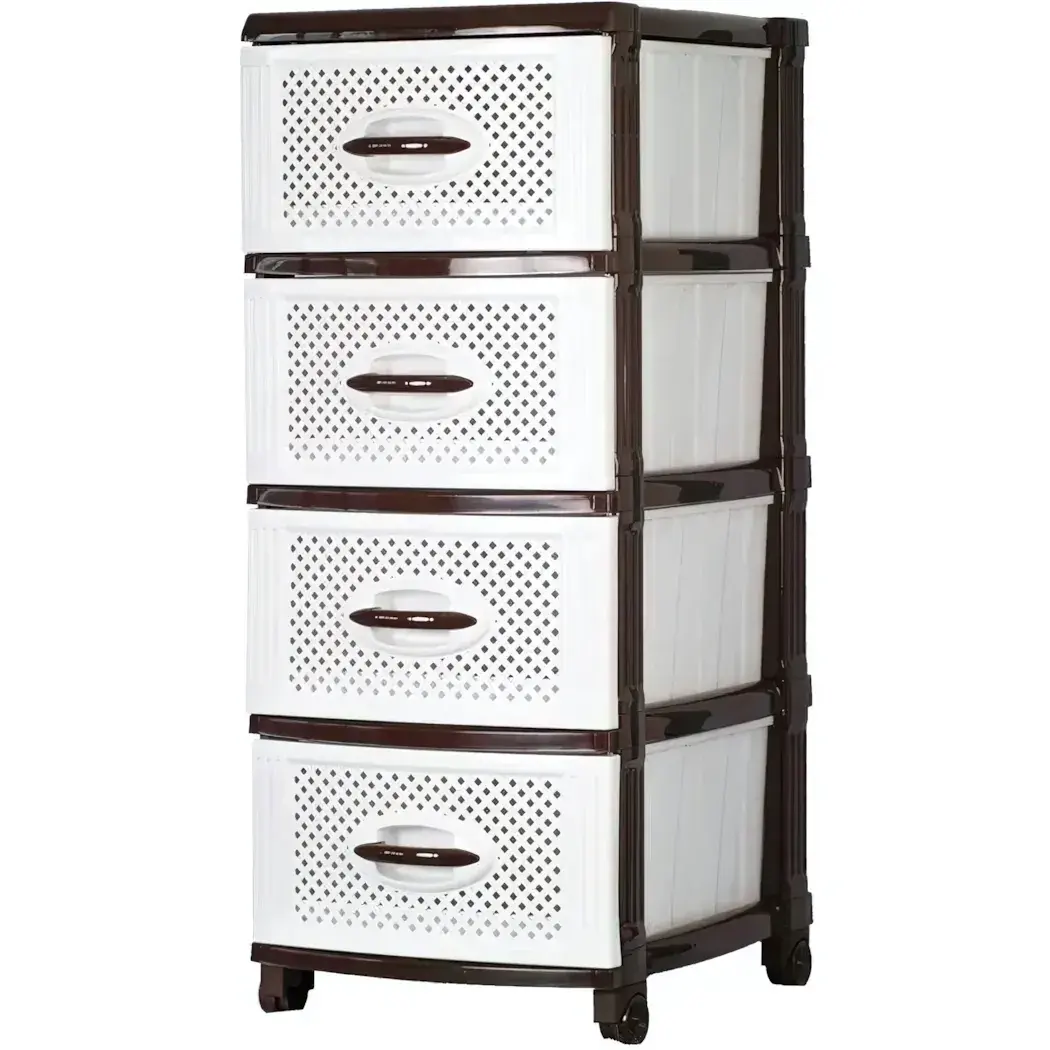 Комод пластиковый на колесах, 5 ящиков, цвет бежево-шоколадный