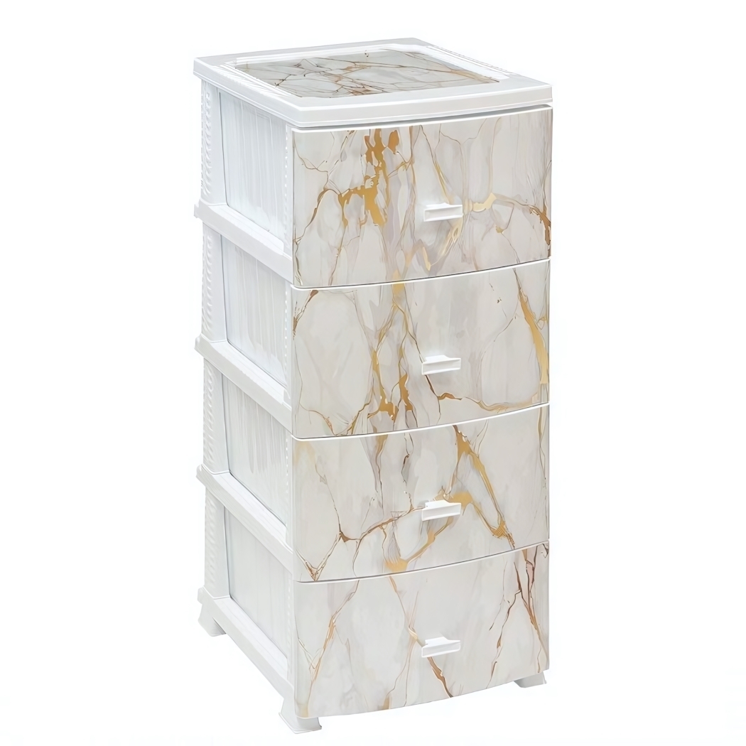 Комод пластиковый "ДЕКОР" 4-х ящичный, белый мрамор, стильный дизайн