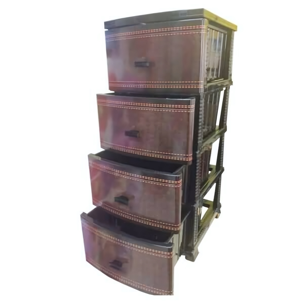 Комод с четырьмя вместительными ящиками идеально подходит для хранения одежды, белья, аксессуаров или домашних мелочей. Вертикальная конструкция экономит пространство, а пластиковые ручки обеспечивают легкое и комфортное открытие ящиков. Такой вариант универсален и впишется как в спальню, гостиную, так и в детскую комнату.