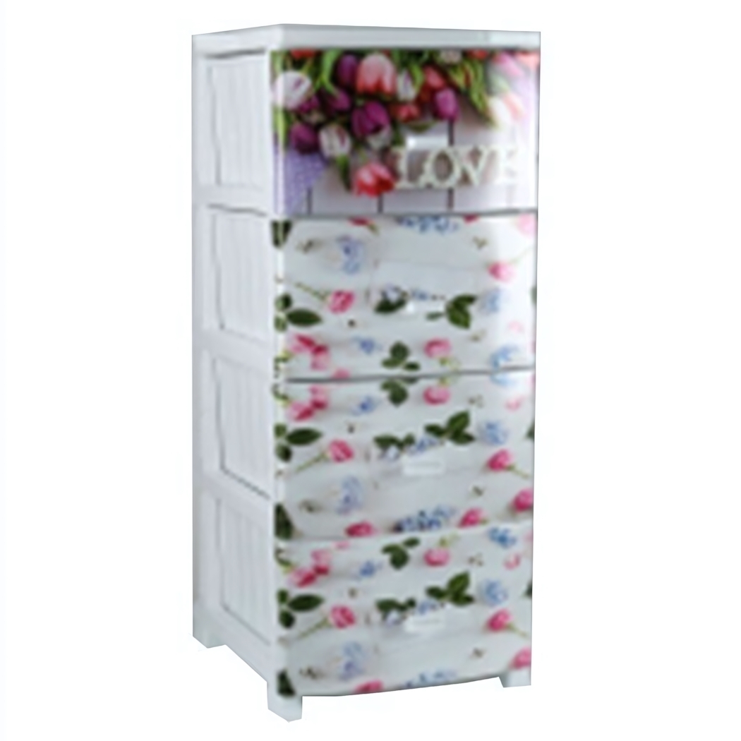 Превратите обычное хранение вещей в настоящее удовольствие с пластиковым комодом 'Весна'. Его нежный цветочный декор с романтичной надписью LOVE создает атмосферу весенней свежести и уюта в любой комнате.