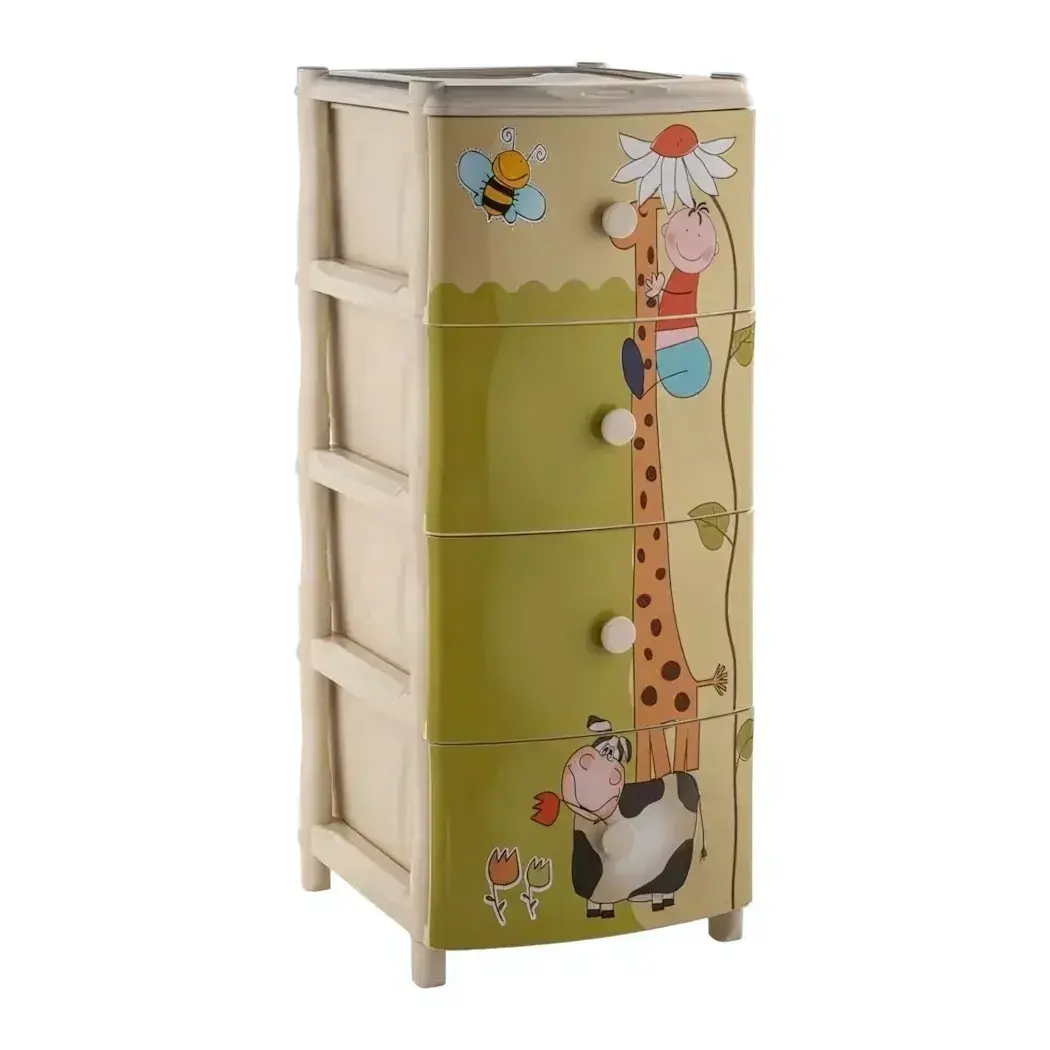 Комод пластиковый детский «Жираф» с рисунками животных, 4 ящика, 39.5х98см, безопасные углы