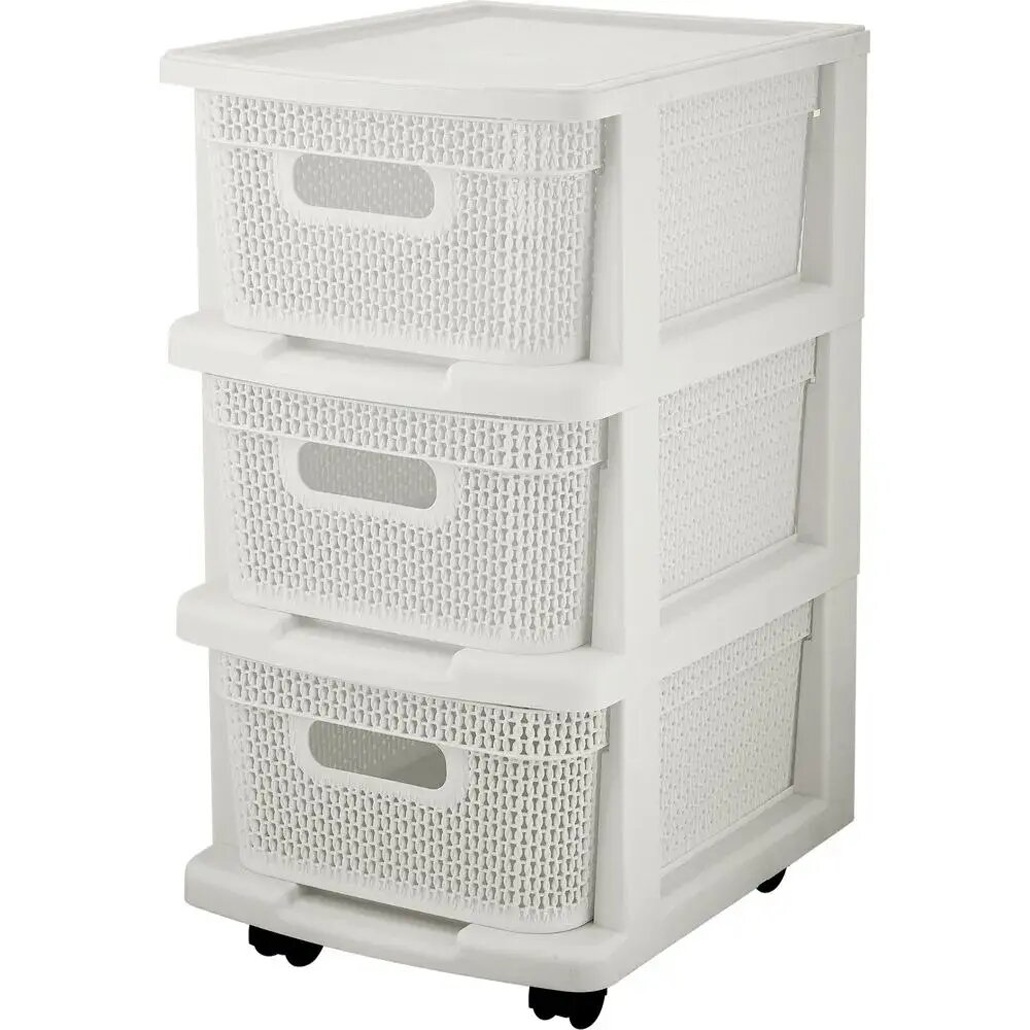 Комод «Ajur» трехсекционный с корзинами на колесиках, 37х56,3 см, цвет белое обла, пластик