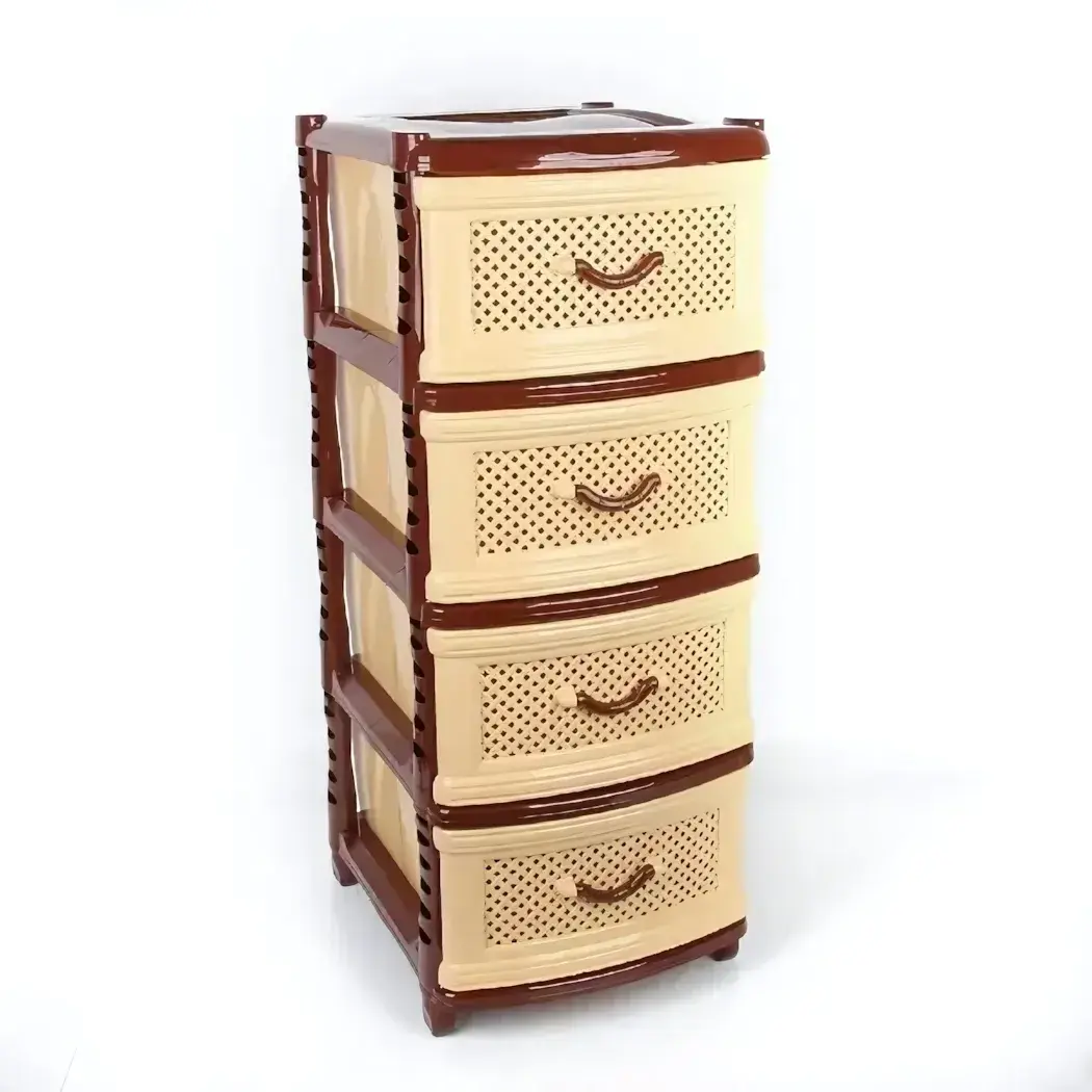 Комод «Классика» оснащен четырьмя выдвижными ящиками, которые обеспечивают легкий доступ к содержимому. Благодаря перфорированной поверхности ящиков, ваши вещи будут вентилироваться, что предотвращает накопление влаги и неприятных запахов. Удобные ручки позволяют легко открывать ящики, а жесткий пластиковый материал гарантирует долговечность и прочность конструкции.