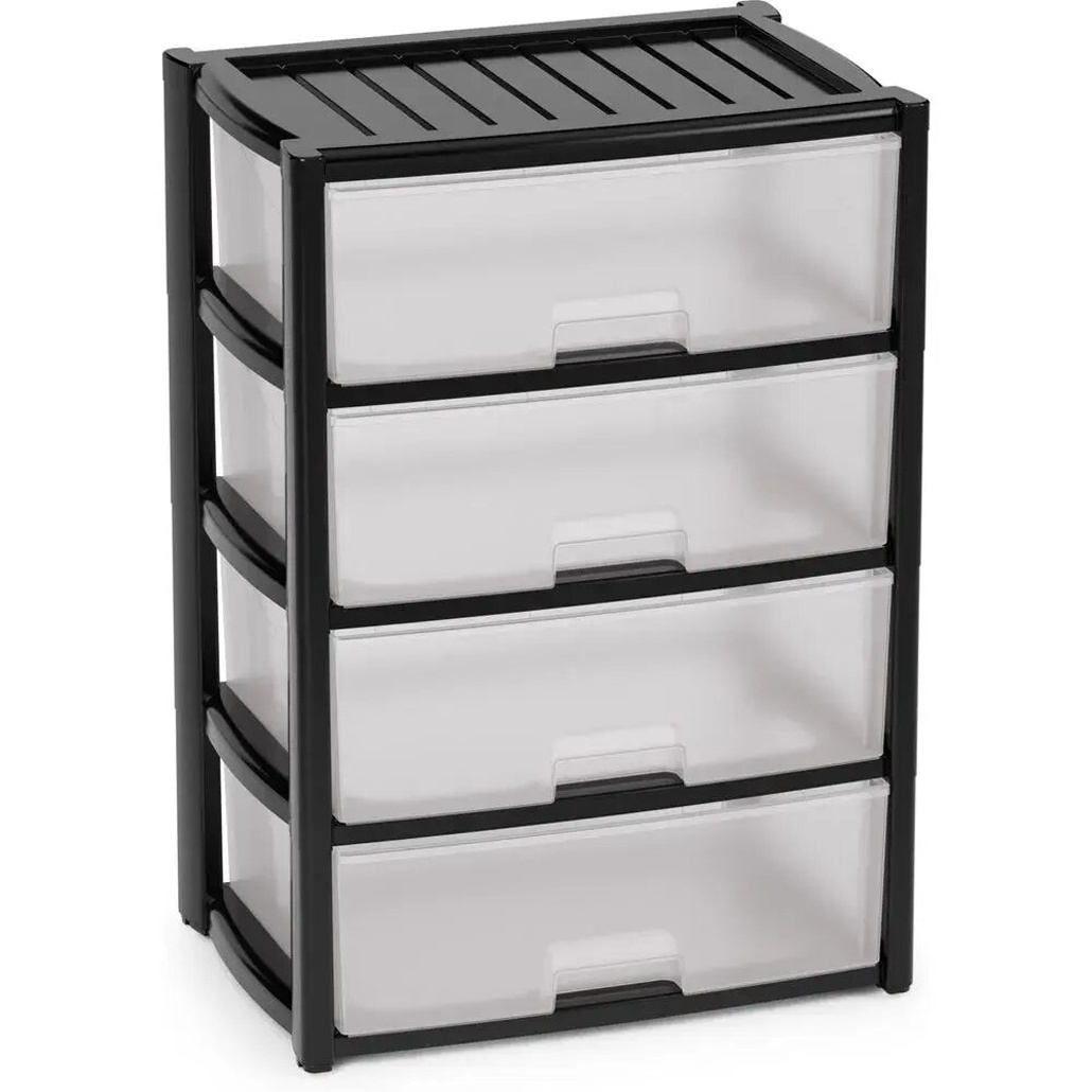 Комод «Колорит» 4-секционный с прозрачными ящиками, пластик, цвет чёрный