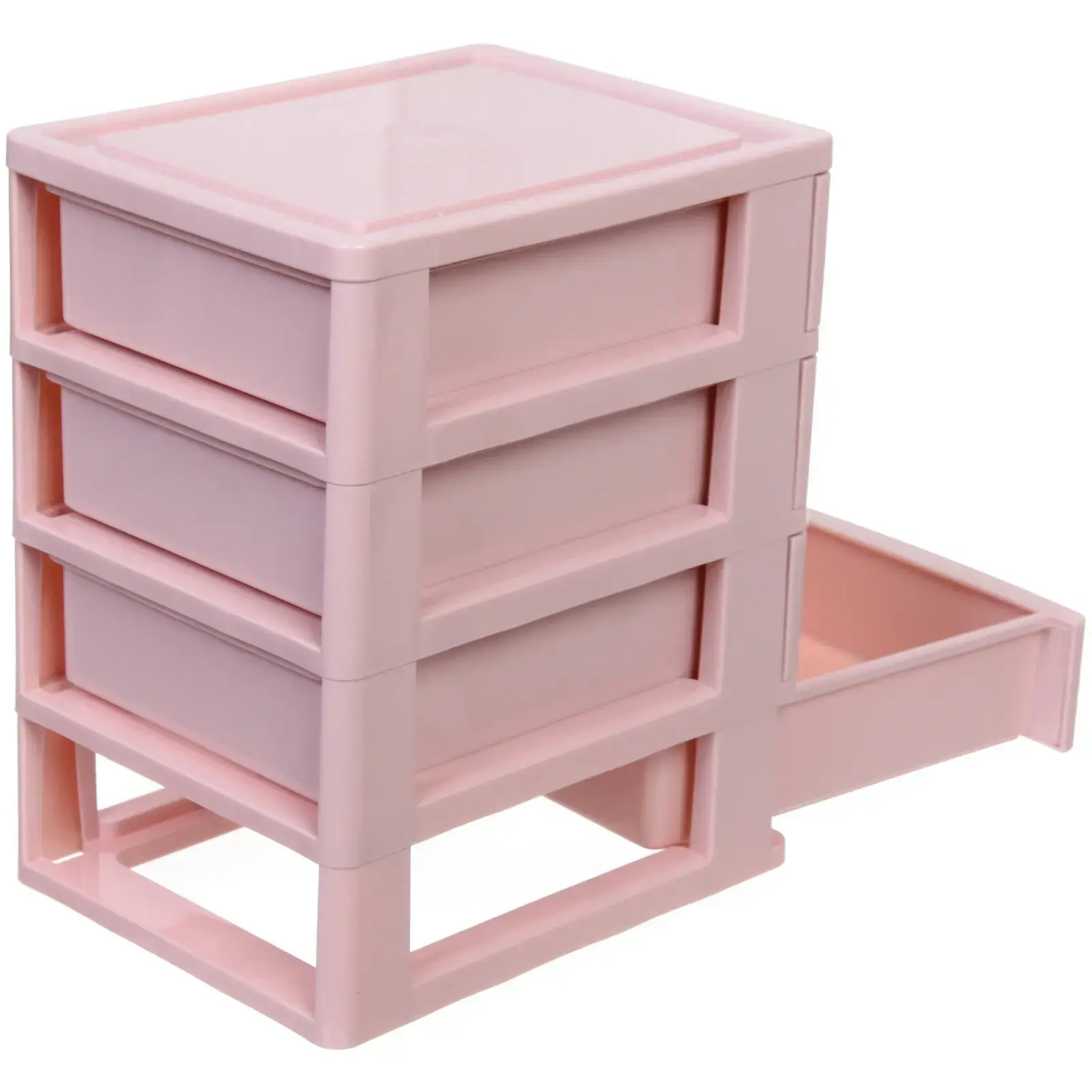 Ищете идеальное решение для хранения мелких предметов? Комод малый для хранения «БАРЛАО» станет вашим надежным помощником в организации пространства. Его стильный дизайн и нежный цвет пудровая роза добавят уют в любой интерьер, а четыре выдвижных ящика позволят удобно разместить косметику, канцелярские принадлежности или другие мелкие вещи.
