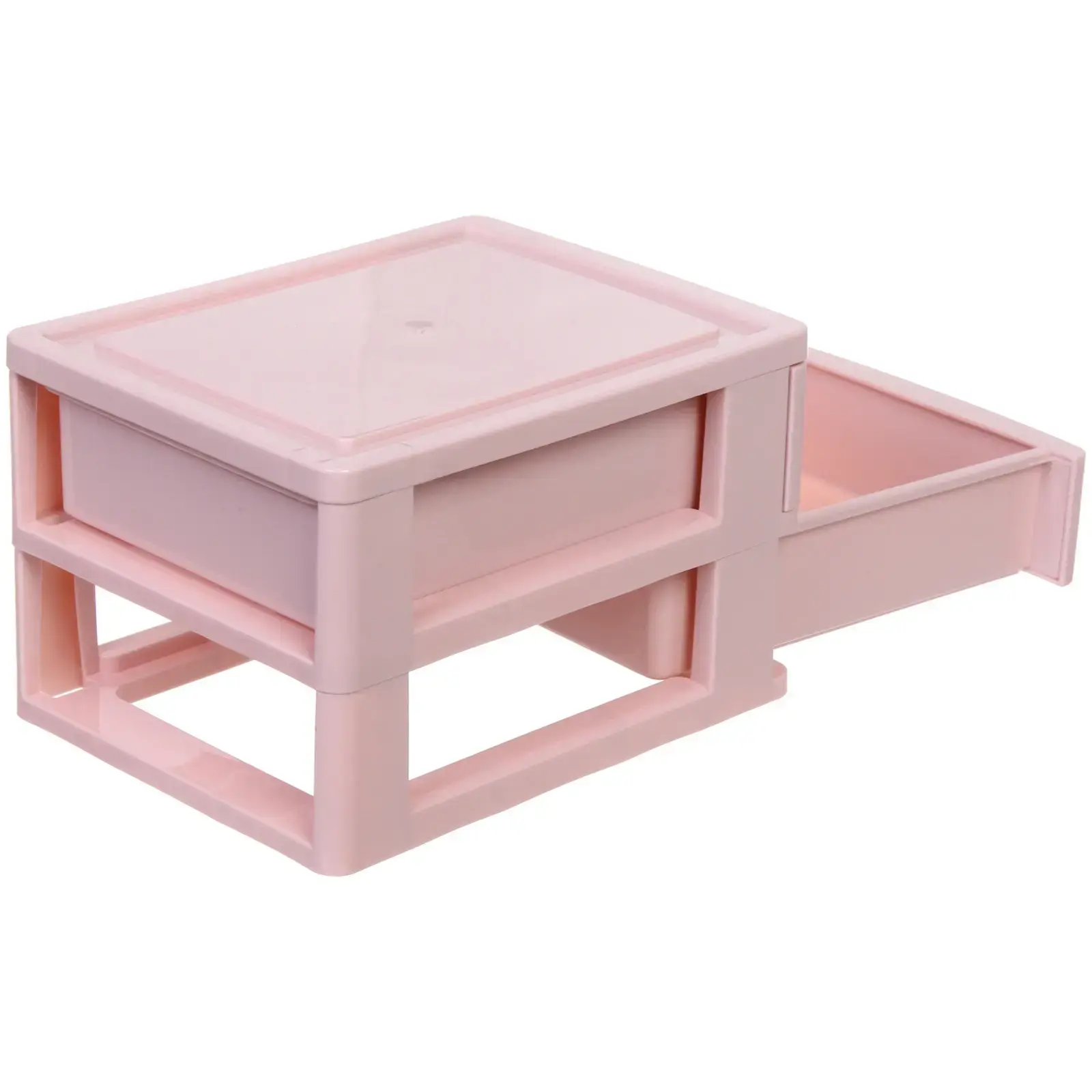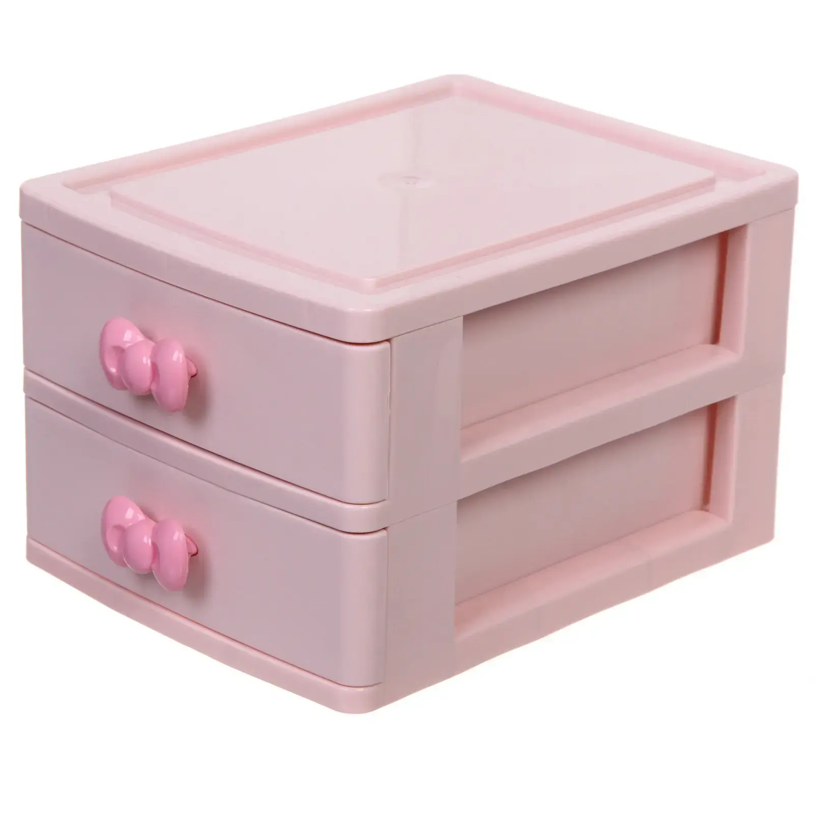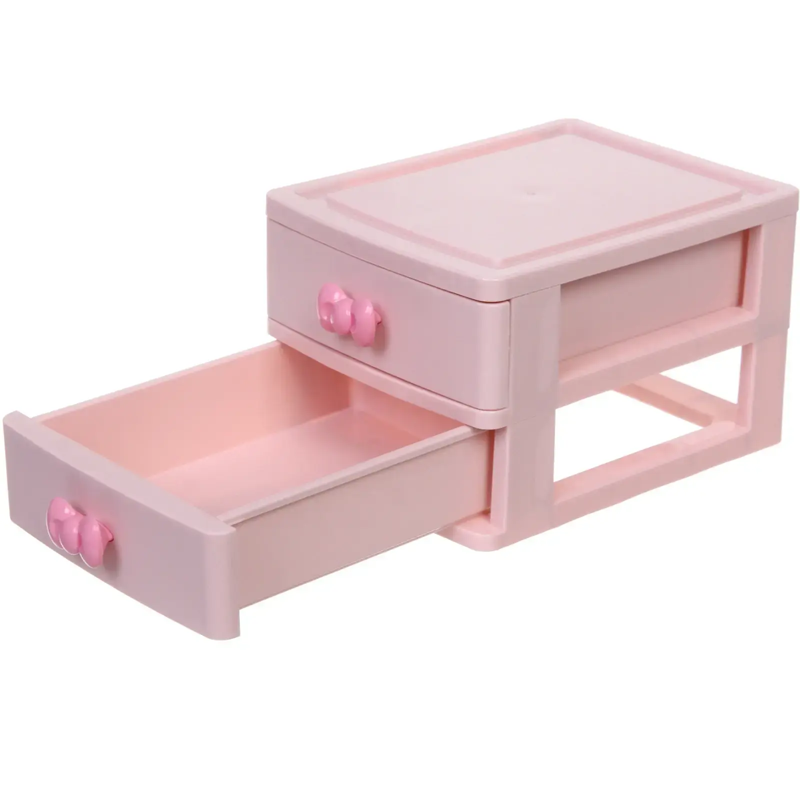 Этот комод идеально подходит для хранения косметики, канцелярских принадлежностей или других мелочей. Благодаря компактным размерам (13х17х10,5 см) он легко впишется в любой уголок вашего дома — на столе, полке или в шкафу. Два выдвижных ящика с округлыми ручками в форме бантиков делают доступ к содержимому простым и удобным.