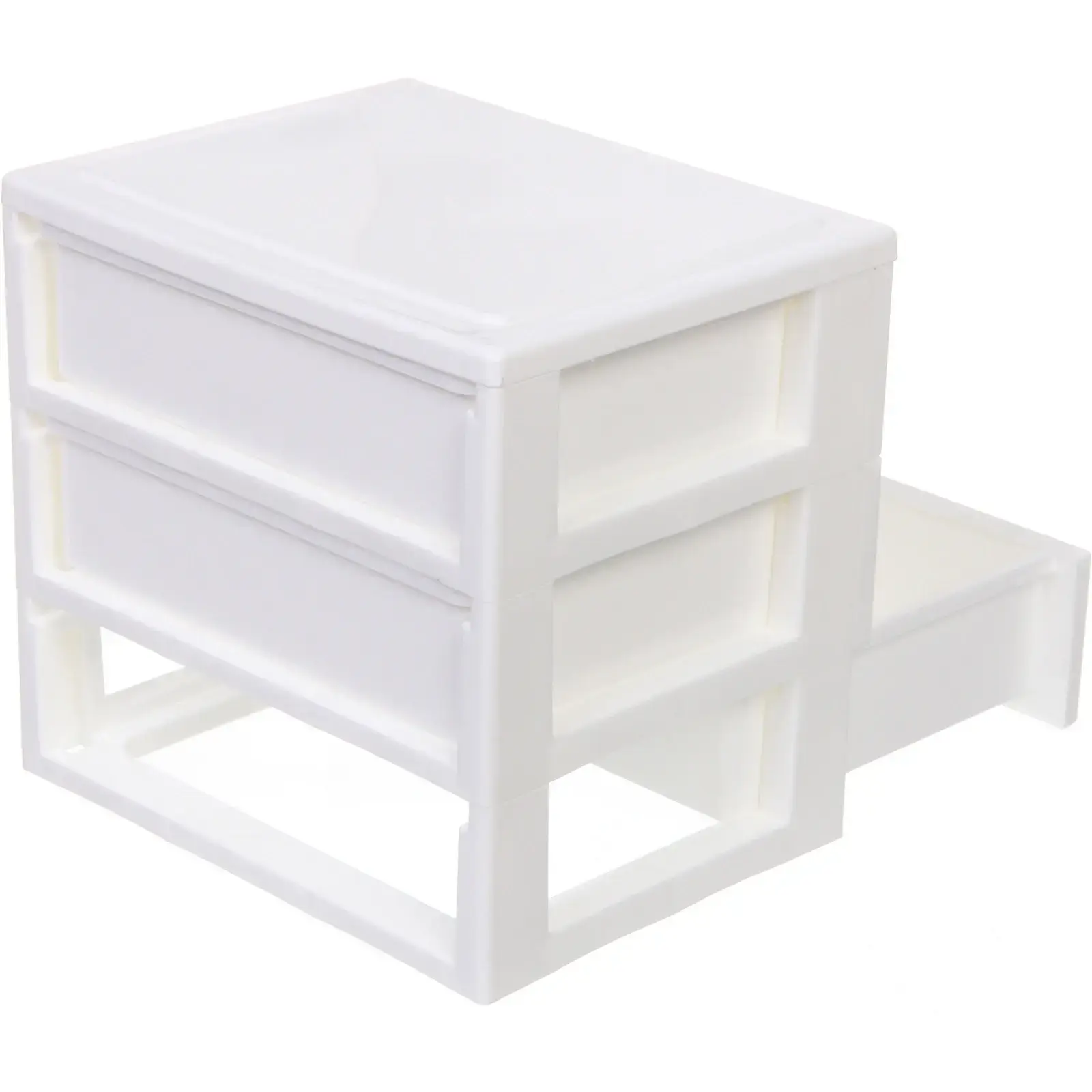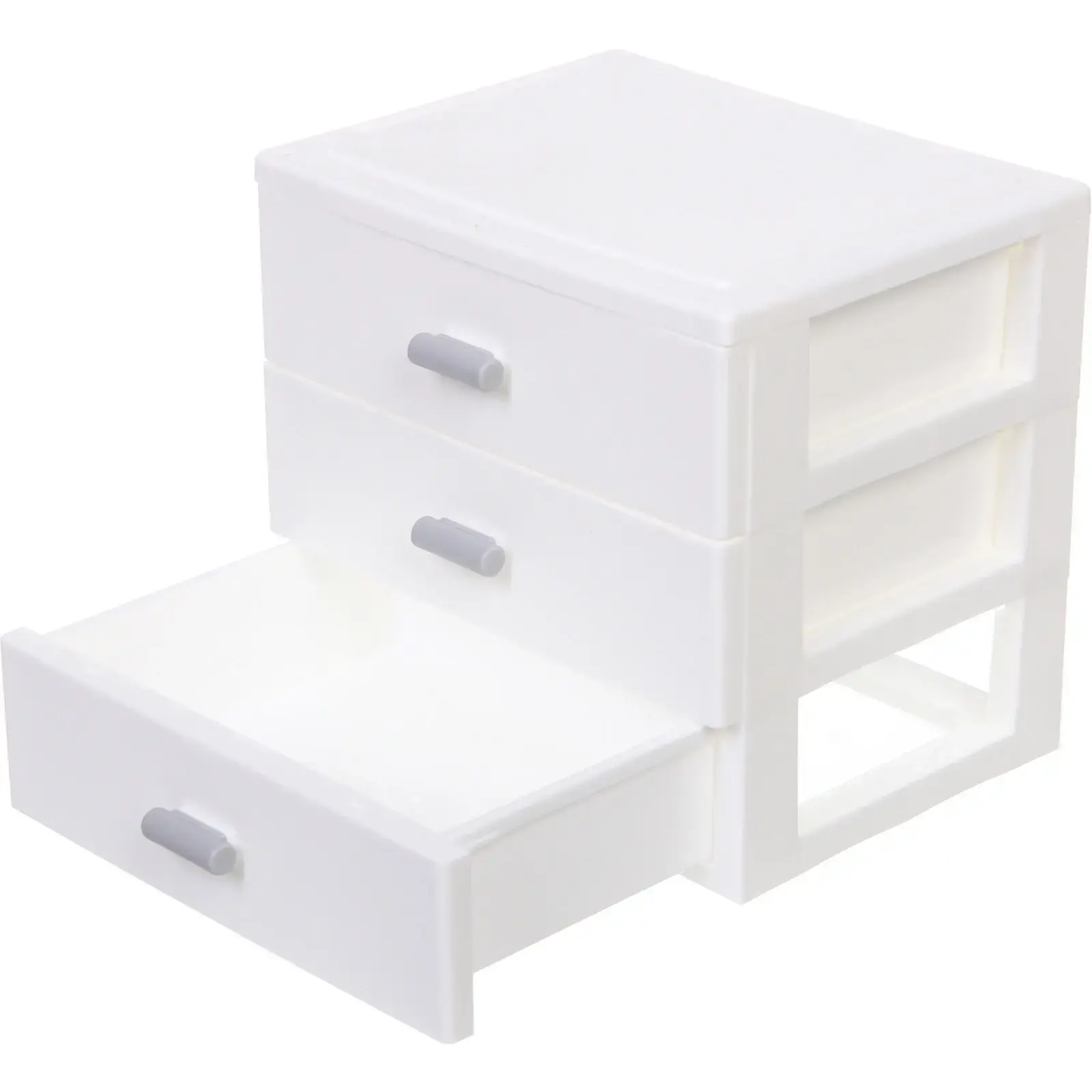 Этот комод идеально подходит для хранения канцелярских принадлежностей, косметики или мелочей, которые всегда должны быть под рукой. Благодаря трем выдвижным ящикам, вы сможете легко организовать пространство на столе или в шкафу. Комод выполнен из прочного пластика, что обеспечивает долговечность и легкость в уходе.