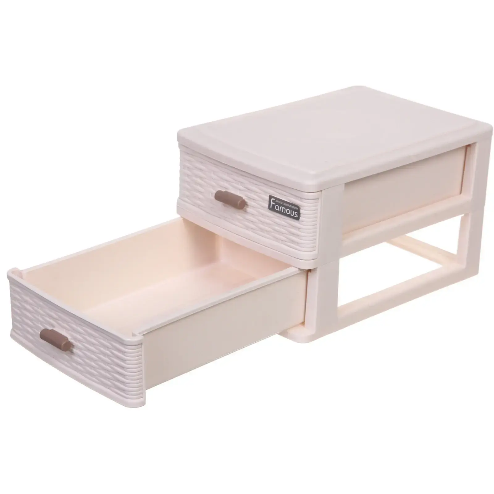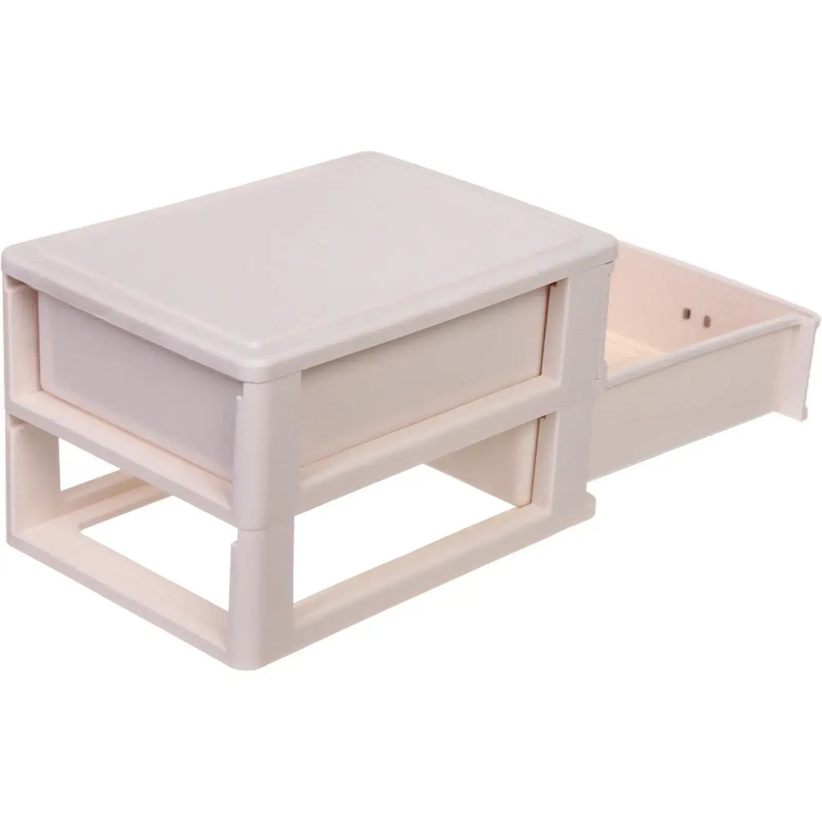 Этот комод идеально подходит для хранения различных мелочей: от канцелярских принадлежностей до косметики. Благодаря двум выдвижным ящикам, вы сможете легко организовать и быстро находить нужные предметы. Он станет отличным выбором как для дома, так и для офиса.