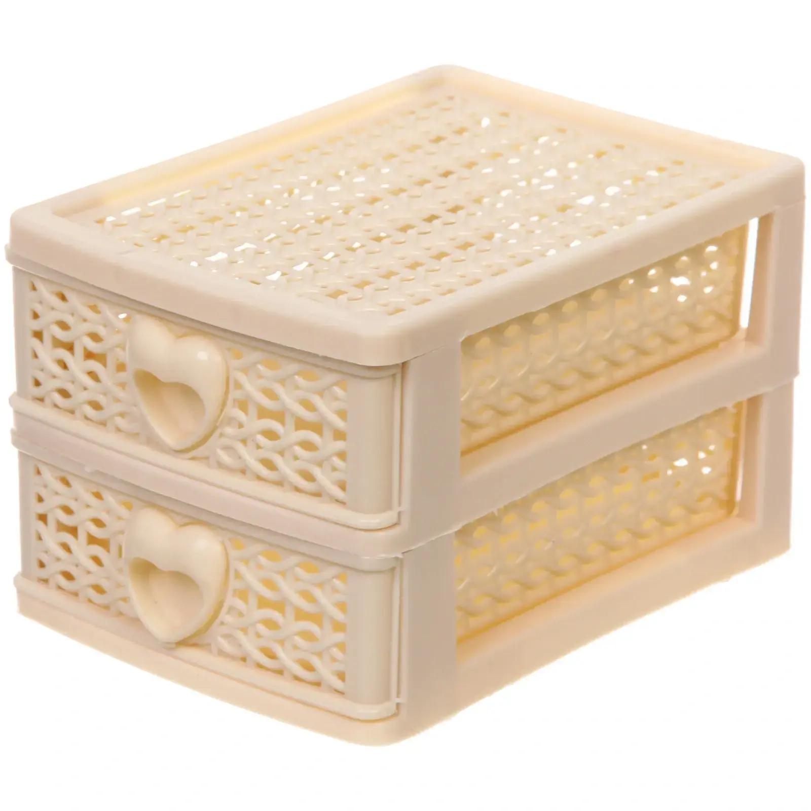 Этот комод идеально подходит для хранения косметики, канцелярских принадлежностей или мелких аксессуаров. Благодаря легкому и прочному пластиковому материалу, он легко чистится и не требует особого ухода. Сердцевидные ручки на ящиках добавляют не только эстетики, но и удобства в использовании.