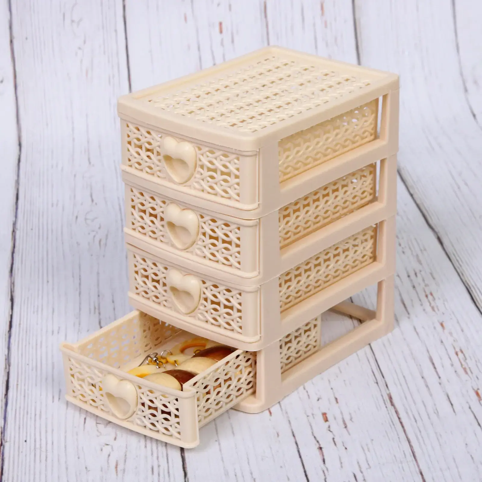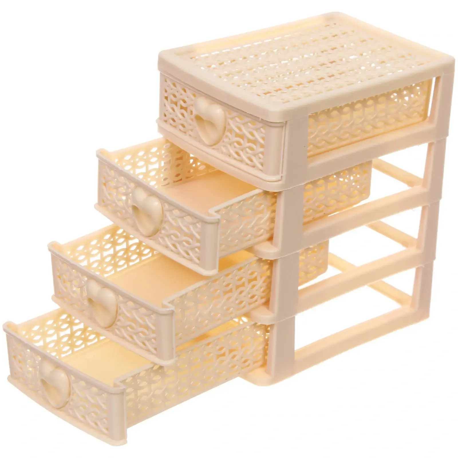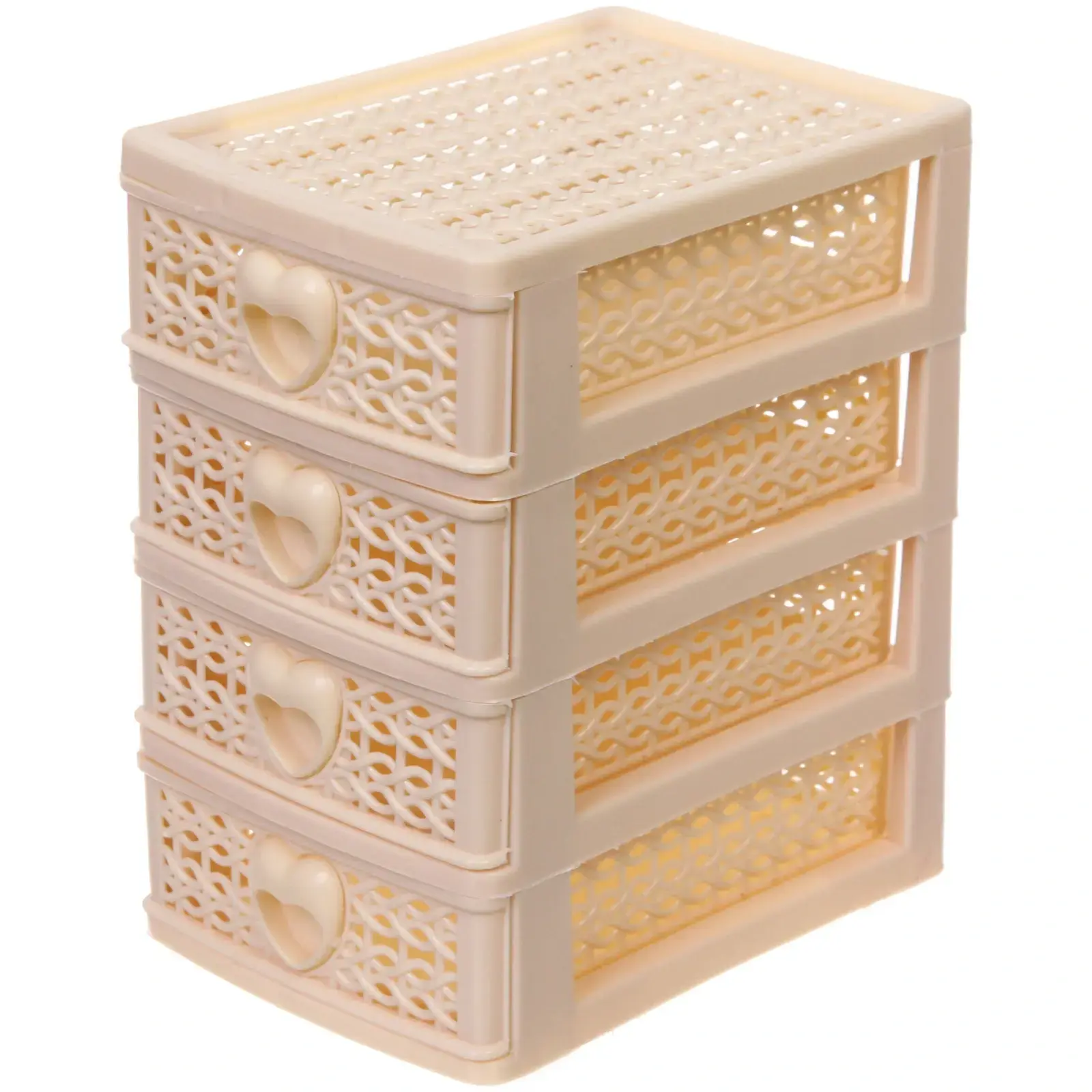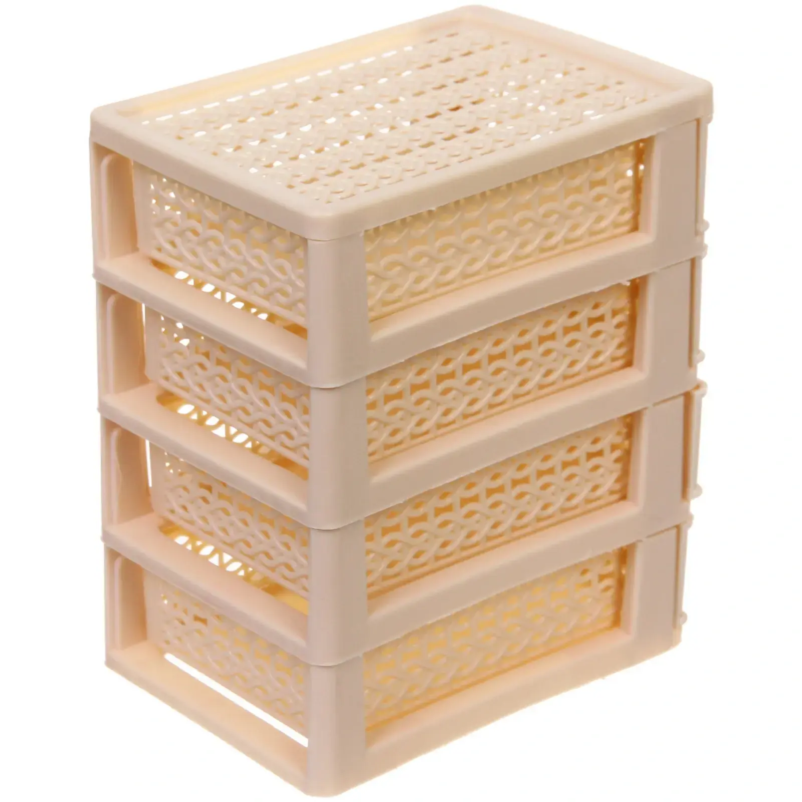Ищете удобный и стильный способ организовать пространство? Комод малый «ПАЛЕРМО» в бежевом цвете станет вашим незаменимым помощником. Его компактные размеры 13х9х15 см позволяют разместить его даже в самых ограниченных пространствах, а четыре ящика обеспечивают достаточное место для хранения мелких предметов, таких как косметика, канцелярия или аксессуары.