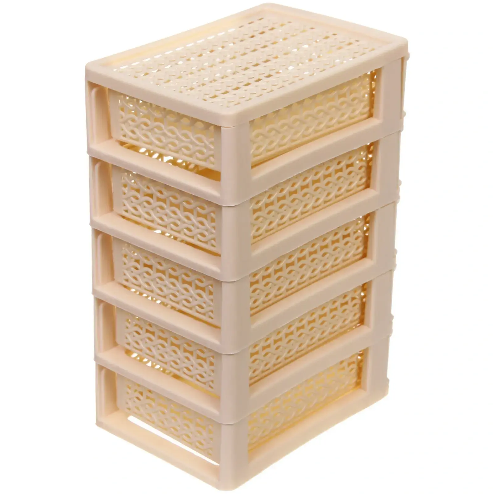 Ищете удобный и стильный способ организовать пространство? Комод малый «ПАЛЕРМО» в бежевом цвете станет вашим надежным помощником в этом. Его компактные размеры 13х9х18,5 см позволяют разместить его даже в самых ограниченных пространствах, а пять выдвижных ящиков обеспечивают достаточное место для хранения мелких предметов, таких как косметика, канцелярские принадлежности или аксессуары.