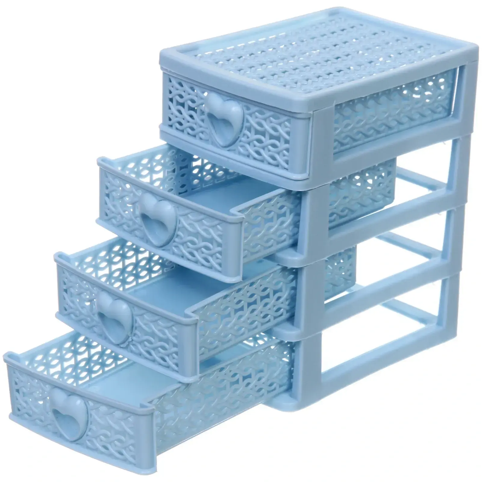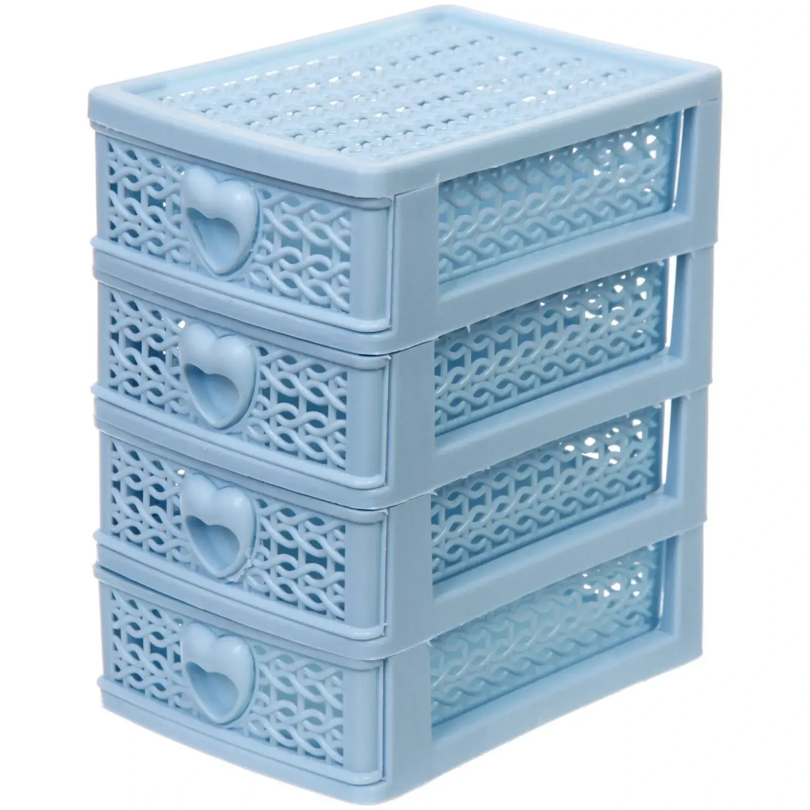 Ищете удобный и стильный способ организовать пространство? Комод малый «ПАЛЕРМО» в голубом цвете станет вашим незаменимым помощником. Его компактные размеры 13х9х15 см позволяют разместить его даже в самых ограниченных пространствах, а четыре выдвижных ящика обеспечивают достаточное место для хранения мелких предметов, таких как канцелярские принадлежности, косметика или украшения.
