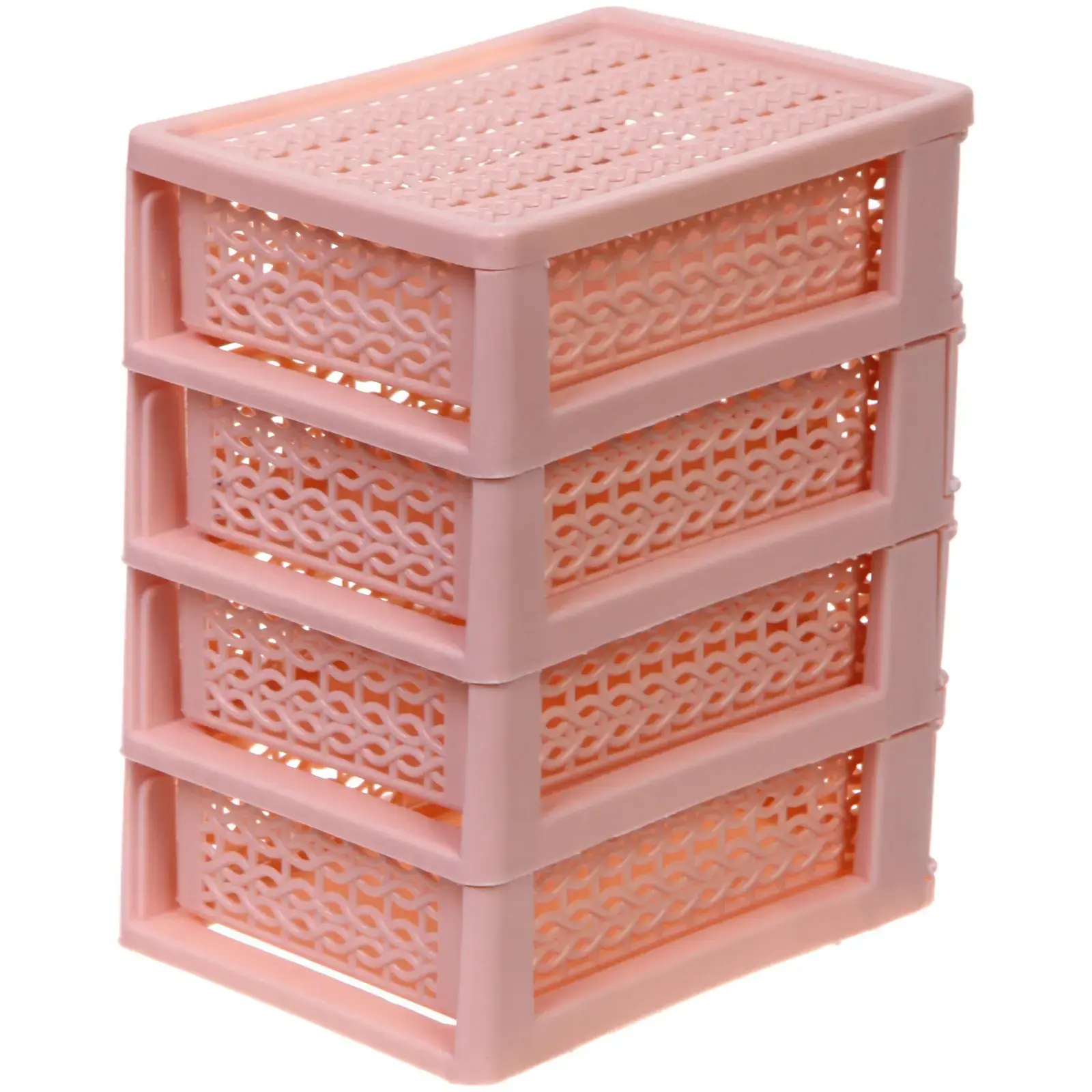 Ищете стильный и функциональный органайзер для мелочей? Комод малый «ПАЛЕРМО» в цвете пудровая роза станет отличным выбором для вашего дома или рабочего пространства. Его компактные размеры 13х9х15 см позволяют разместить его даже в самых ограниченных пространствах, а четыре выдвижных ящика обеспечивают удобный доступ к содержимому.