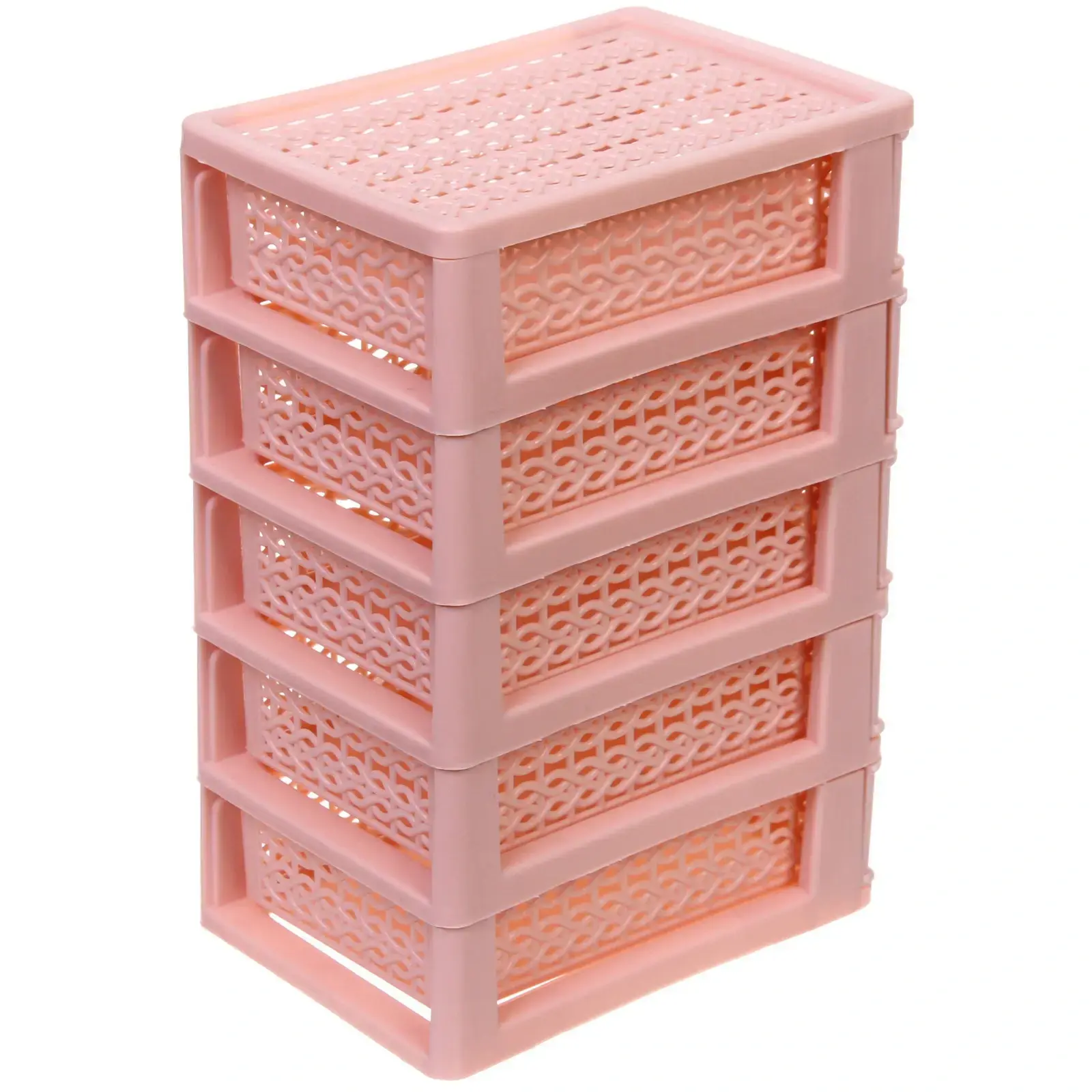 Ищете удобный и стильный способ организовать пространство? Комод малый «ПАЛЕРМО» в пудровой розе станет вашим незаменимым помощником. Его компактные размеры 13х9х18,5 см позволяют разместить его на столе или в шкафу, а пять выдвижных ящиков обеспечивают достаточно места для хранения мелких предметов, таких как канцелярские принадлежности, косметика или аксессуары.