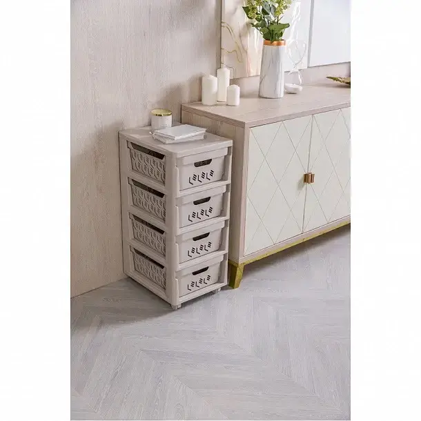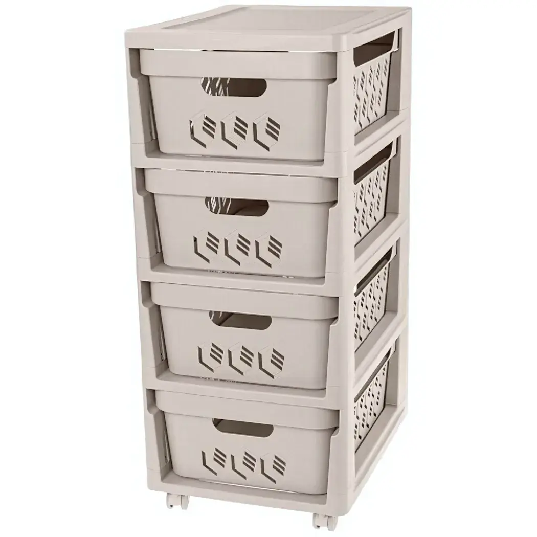 Комод на колесах «Deluxe» 4 ящика, 30х38,5х69 см, пластик, светло-бежевый, экономия пространства