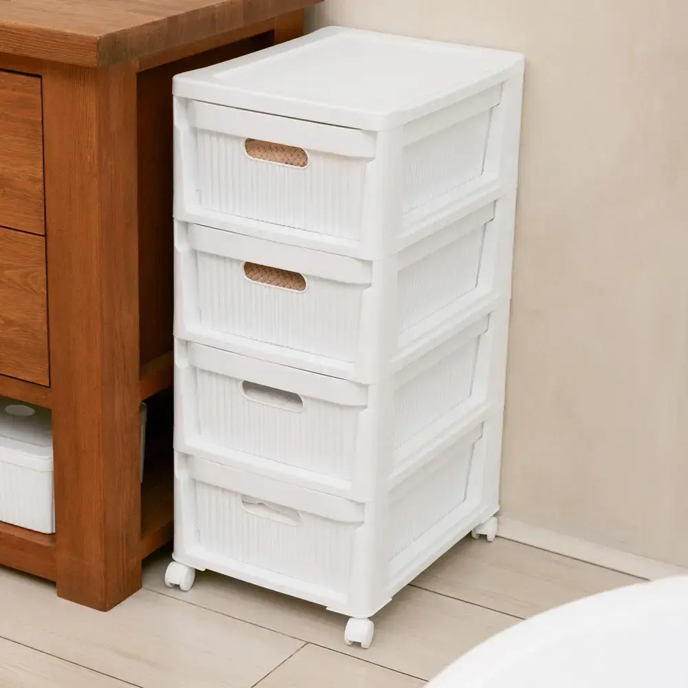 Комод «VELVET» на колесах, 4 съёмных ящика по 13 л, 30×38,5×69 см, пластик, белый