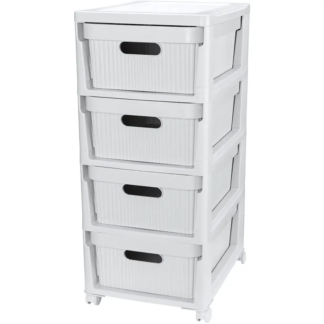 Комод VELVET с 4 вместительными ящиками и мобильной базой — ваша свобода в организации пространства. Идеально подходит для хранения косметики, игрушек, бытовых мелочей и текстиля в любой комнате. Благодаря компактным габаритам 30х38,5х69 см легко размещается в узких коридорах, санузлах и гардеробных.