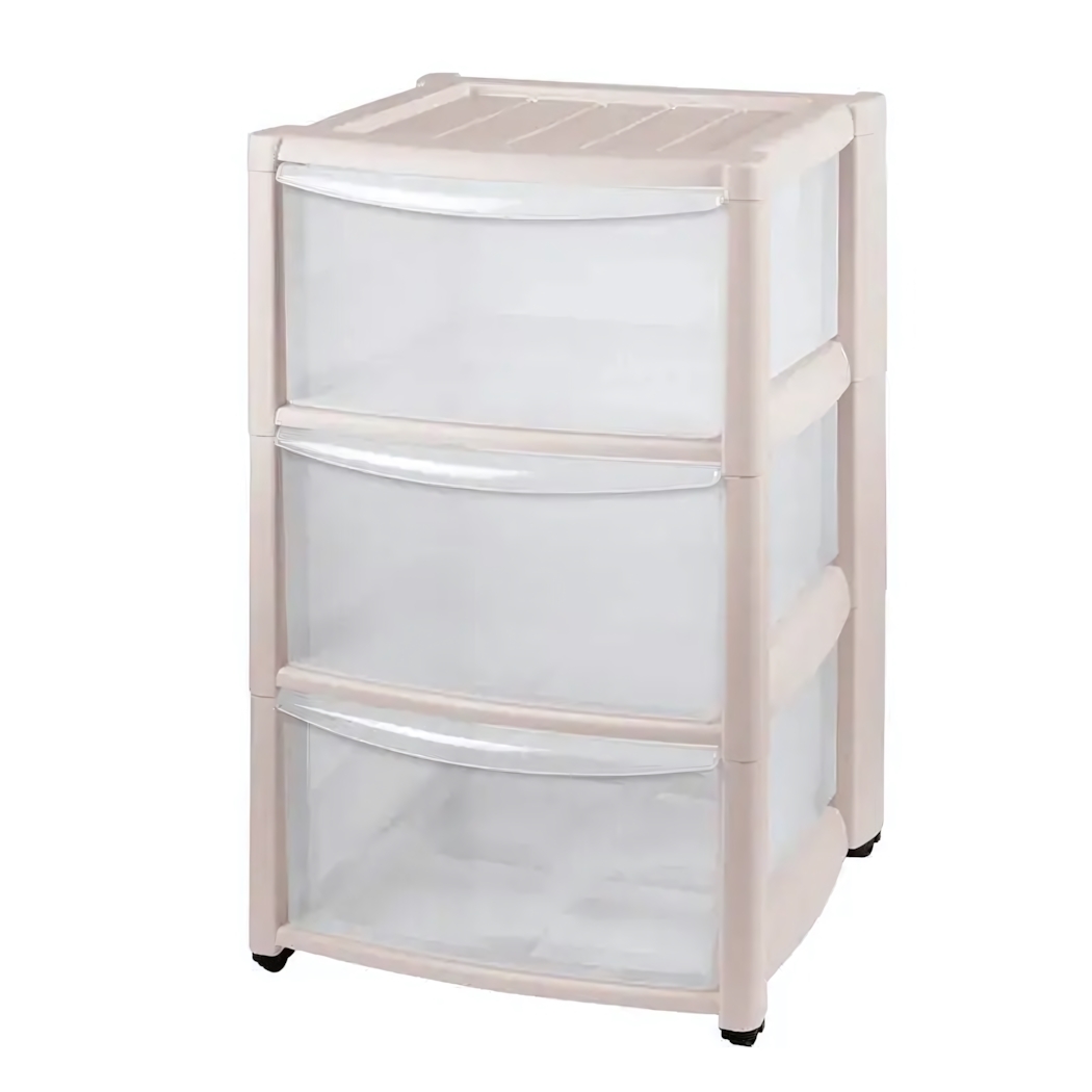 Комод на колесах «Амадео» с 3 ящиками, пластик, бежевый цвет, 40х60х90см
