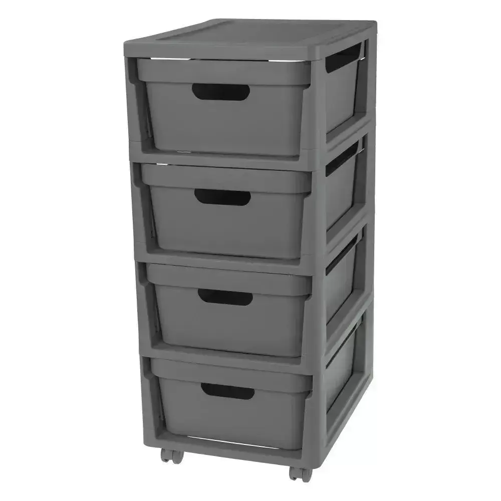 Комод пластиковый на колесах с 4 ящиками, 30х69 см, серый, для удобного хранения