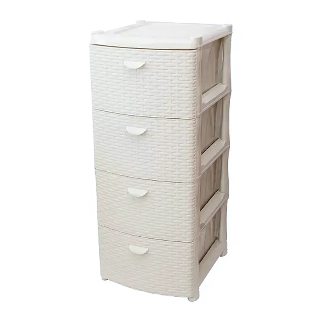 Комод пластиковый 'РОТАНГ', 4 секции, белый ротанг, 96х50.5см