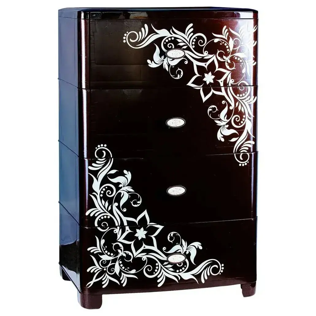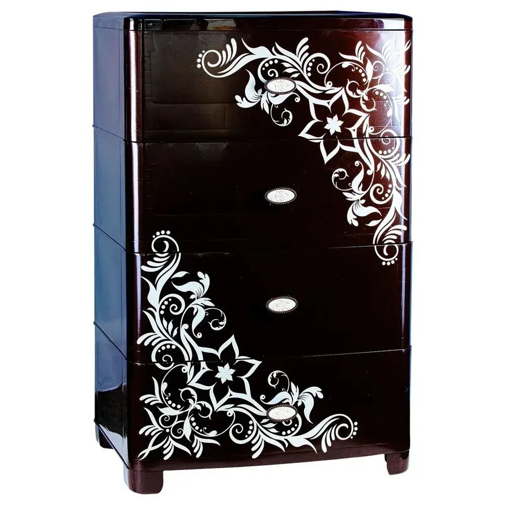 Пластиковый комод 'Эдем' станет идеальным решением для организованного хранения вещей в вашем доме. Его благородный шоколадный цвет и изысканный декоративный узор создают атмосферу уюта и стиля.