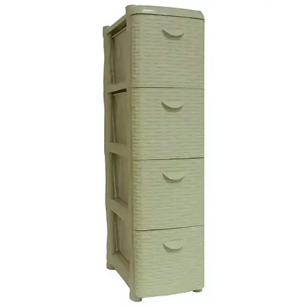 Комод узкий «Ротанг» с 4 ящиками, пластик под ротанг, бежевый, 96.5×50.2×26 см