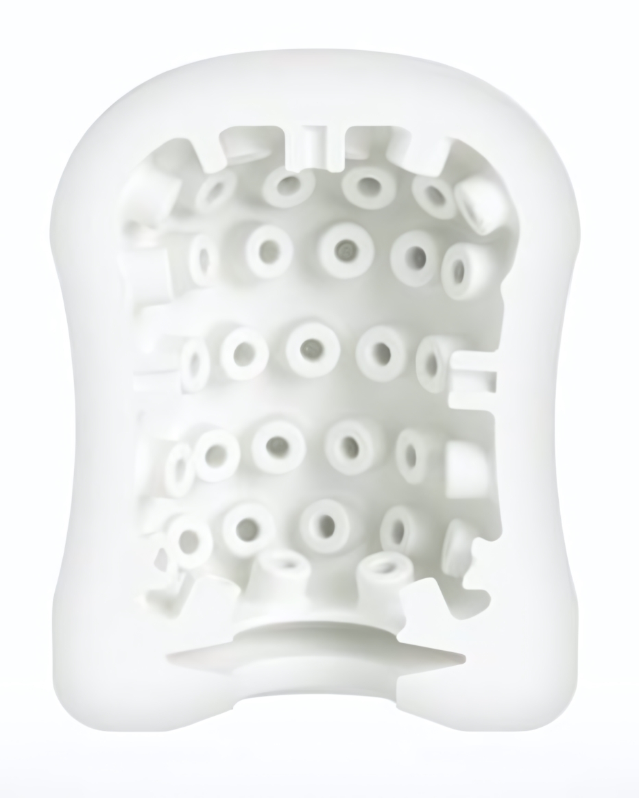 Внутренний канал с комбинированной текстурой сочетает рельефные точки и волнообразные изгибы. Миниатюрные габариты (4.5 см) и нейтральный белый цвет позволяют discreetно хранить аксессуар. Упаковка в защитную тубу сохраняет гигиеничность при транспортировке.