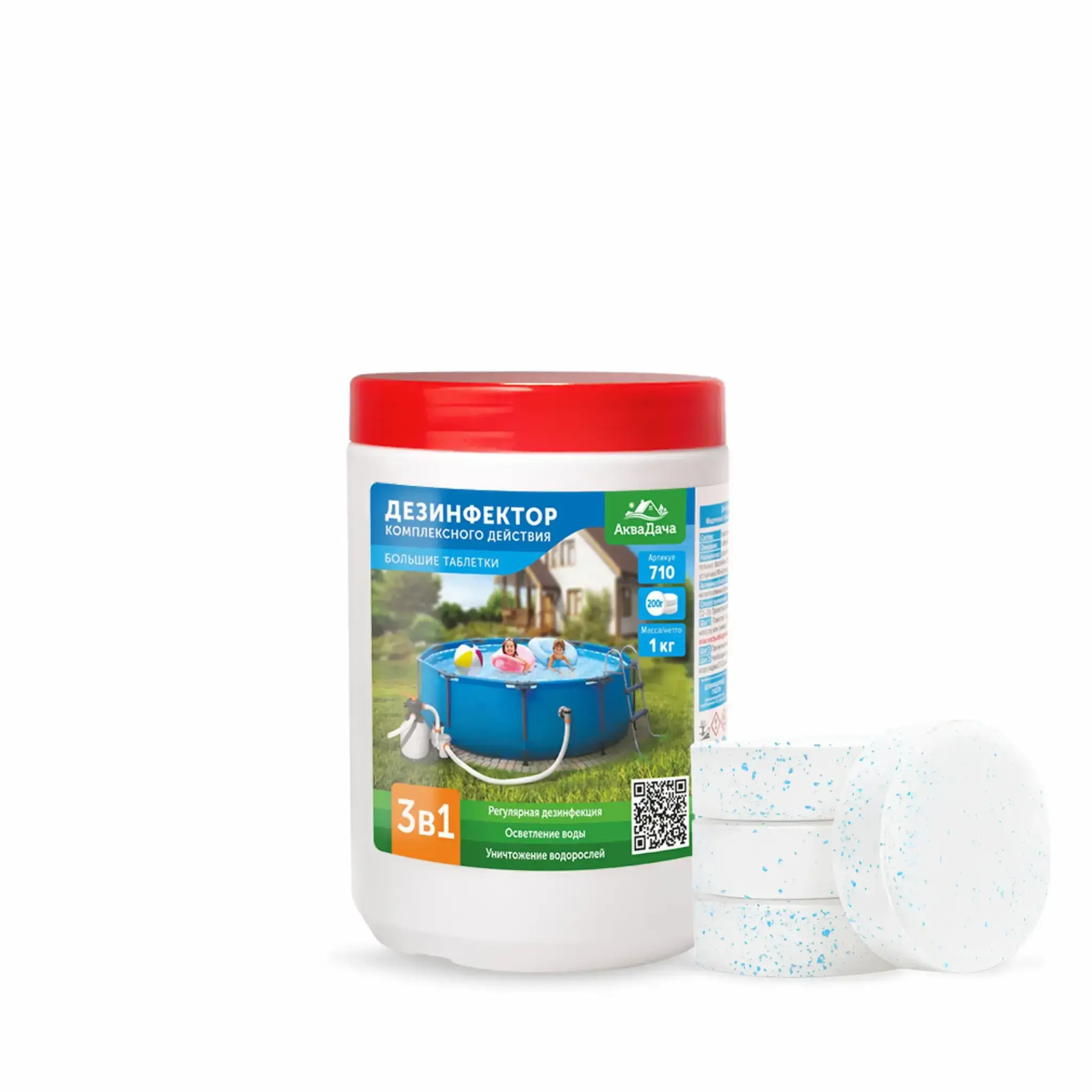 Средство "Аквадача DK1TAB" — это комплексное решение для дезинфекции, осветления и защиты воды от водорослей. Простота использования и длительный срок хранения делают его незаменимым помощником в уходе за бассейном.
