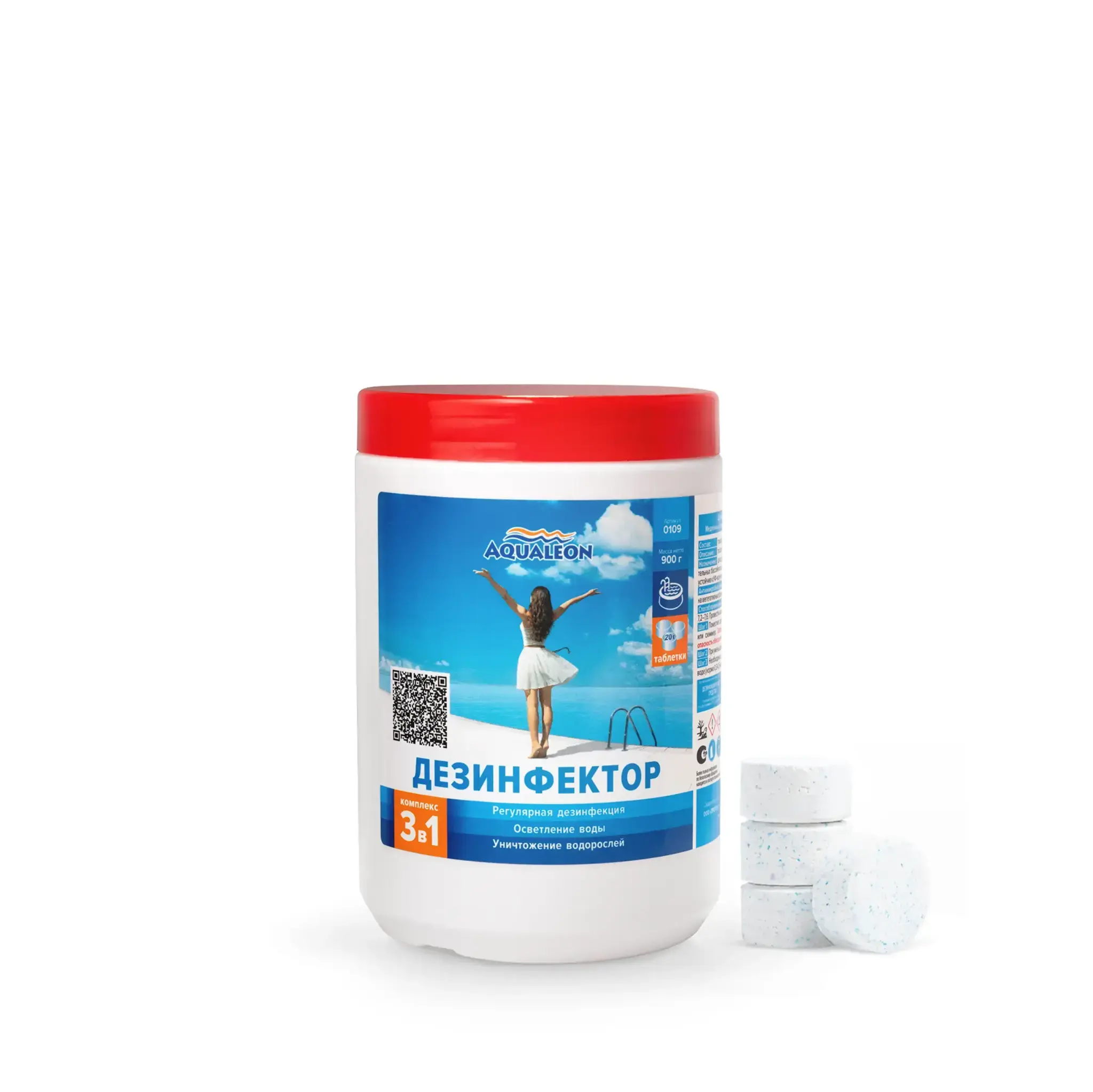 Средство для дезинфекции бассейнов Aqualeon DKM0.9TB, таблетки 20г, банка 0,9кг
