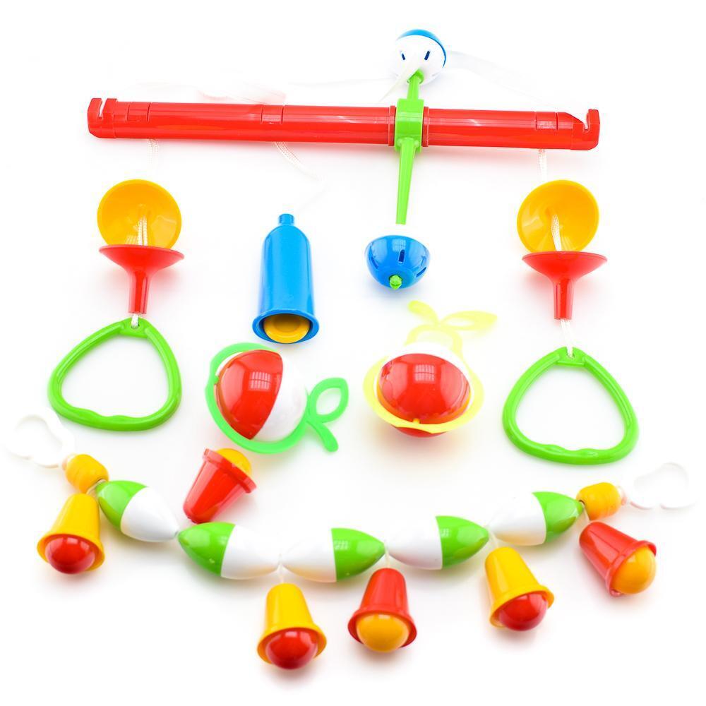 Закрепите подвесные элементы над кроваткой или коляской на расстоянии 20-25 см от глаз малыша. Меняйте положение игрушек каждые 3-4 дня для поддержания интереса. Используйте колокольчики во время гимнастики — это превратит упражнения в увлекательную игру.