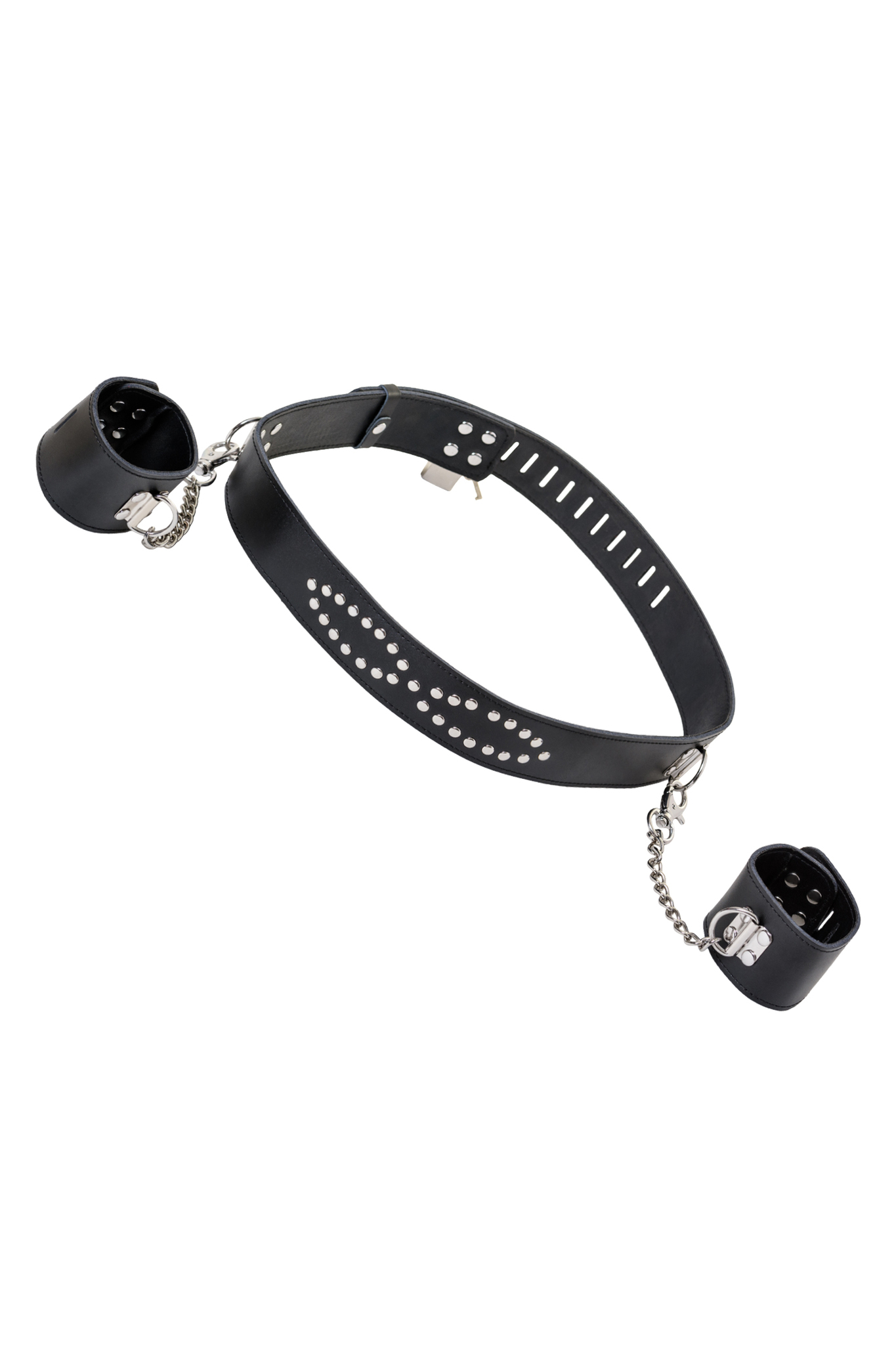 Набор для фиксации «Theatre»: кожаный пояс с наручниками, черный, цепь 15 см
