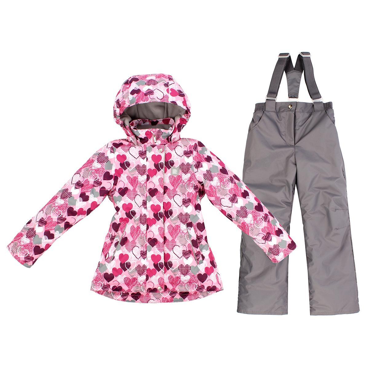 Комплект утепленный для девочки Rusland, мембрана, сердечки, р.116, розовый/серый – защита от влаги и холода