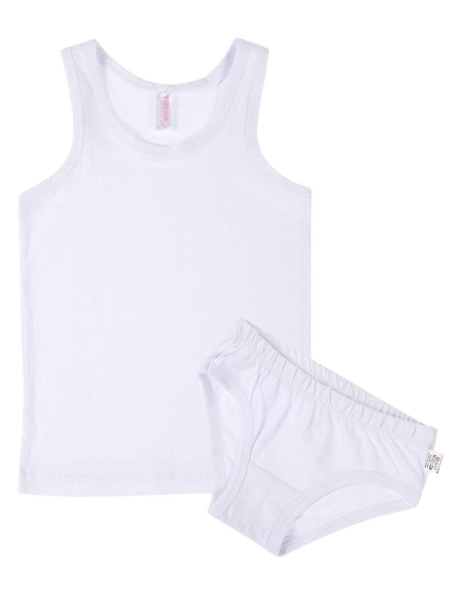 Ищете идеальный комплект для своей маленькой модницы? Этот комплект состоит из белой майки и трусов, обеспечивая максимальный комфорт и комфортное ношение. Изготовленный из 100% хлопка, он отлично подходит для ежедневного использования, позволяя коже дышать и предотвращая раздражения при активной деятельности. Это отличный выбор для теплой погоды, поскольку материал легкий и приятный на ощупь.